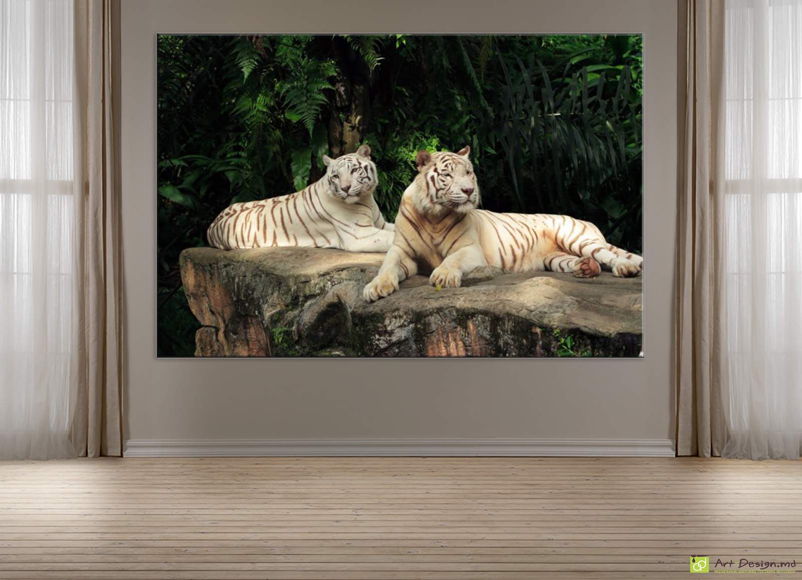 Картина на холсте, Пара белых тигров. Украсить интерьер легко с Картинами для интерьера от Art-Design.md. Высокое качество и стильный дизайн. Доставка по Молдове.