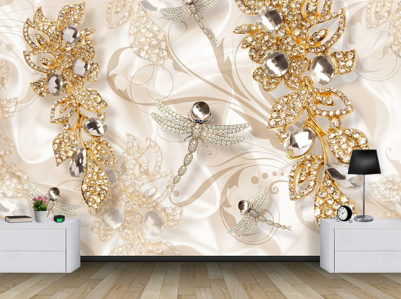 Фотообои с 3D эффектом - Шелк с украшениями_5 — современные фотообои для оформления стен в интерьере. Изображение наносится на качественный материал с высокой детализацией, что позволяет создать эффект глубины и визуально расширить пространство.