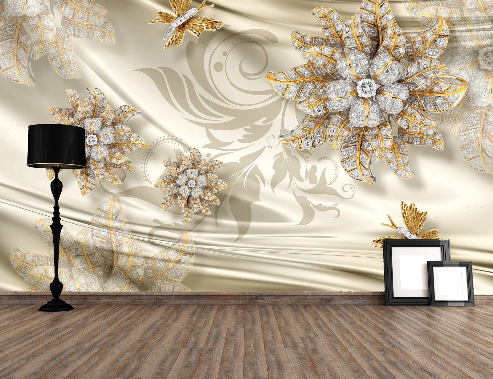 Фотообои с 3D эффектом - Шелк с украшениями_6 — современные фотообои для оформления стен в интерьере. Изображение наносится на качественный материал с высокой детализацией, что позволяет создать эффект глубины и визуально расширить пространство.