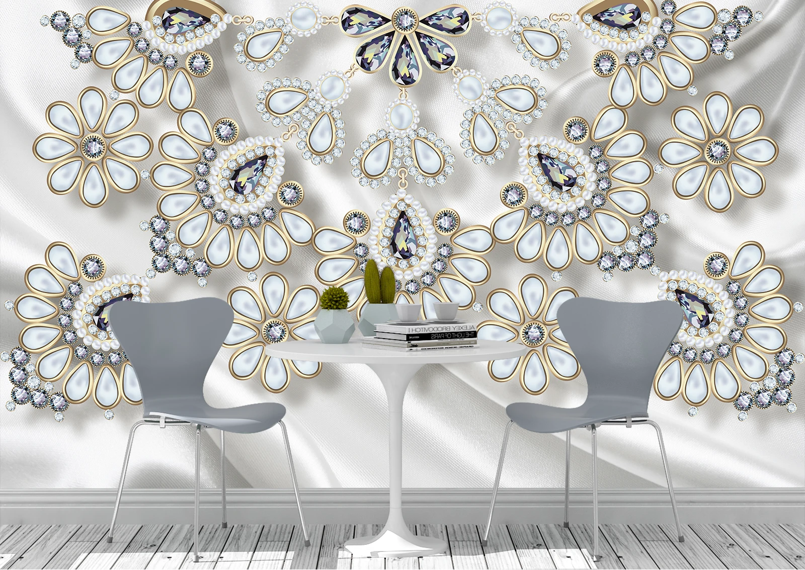 Фотообои с 3D эффектом - Шелк с украшениями_9 — современные фотообои для оформления стен в интерьере. Изображение наносится на качественный материал с высокой детализацией, что позволяет создать эффект глубины и визуально расширить пространство.