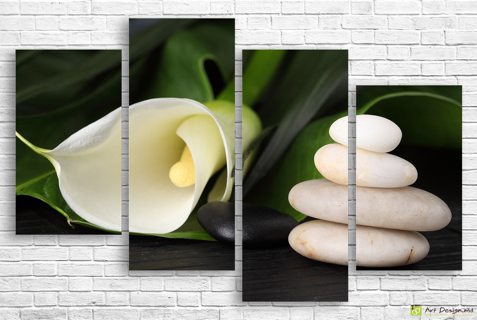 Модульная картина каллы и камни дзен для интерьера спа и гостиной ✅ печать на плотном холсте с точной цветопередачей ✓ подходит для релакса. ⭐ Art-Design.md