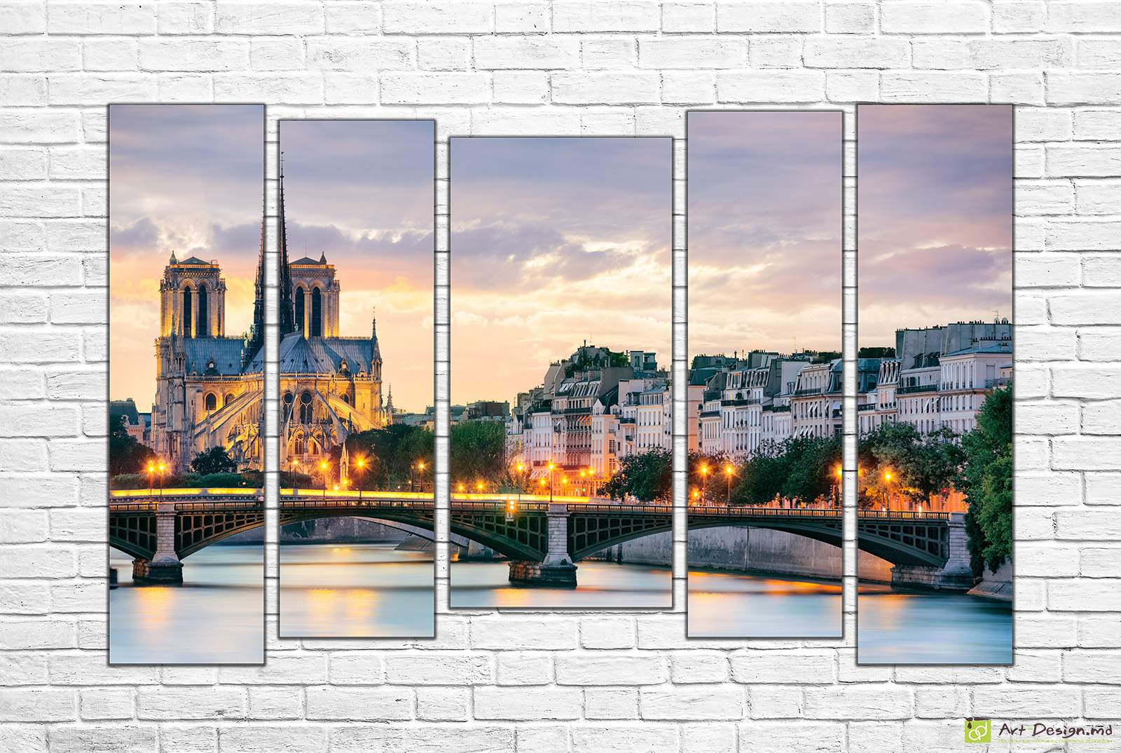 ✅ Модульная картина Париж — собор Нотр-Дам де Пари. ✓ Закат над Сеной, мост и огни города. Высокое качество. Полиптих. 🚚 Доставка по Кишинёву. ⭐ Art-Design.md