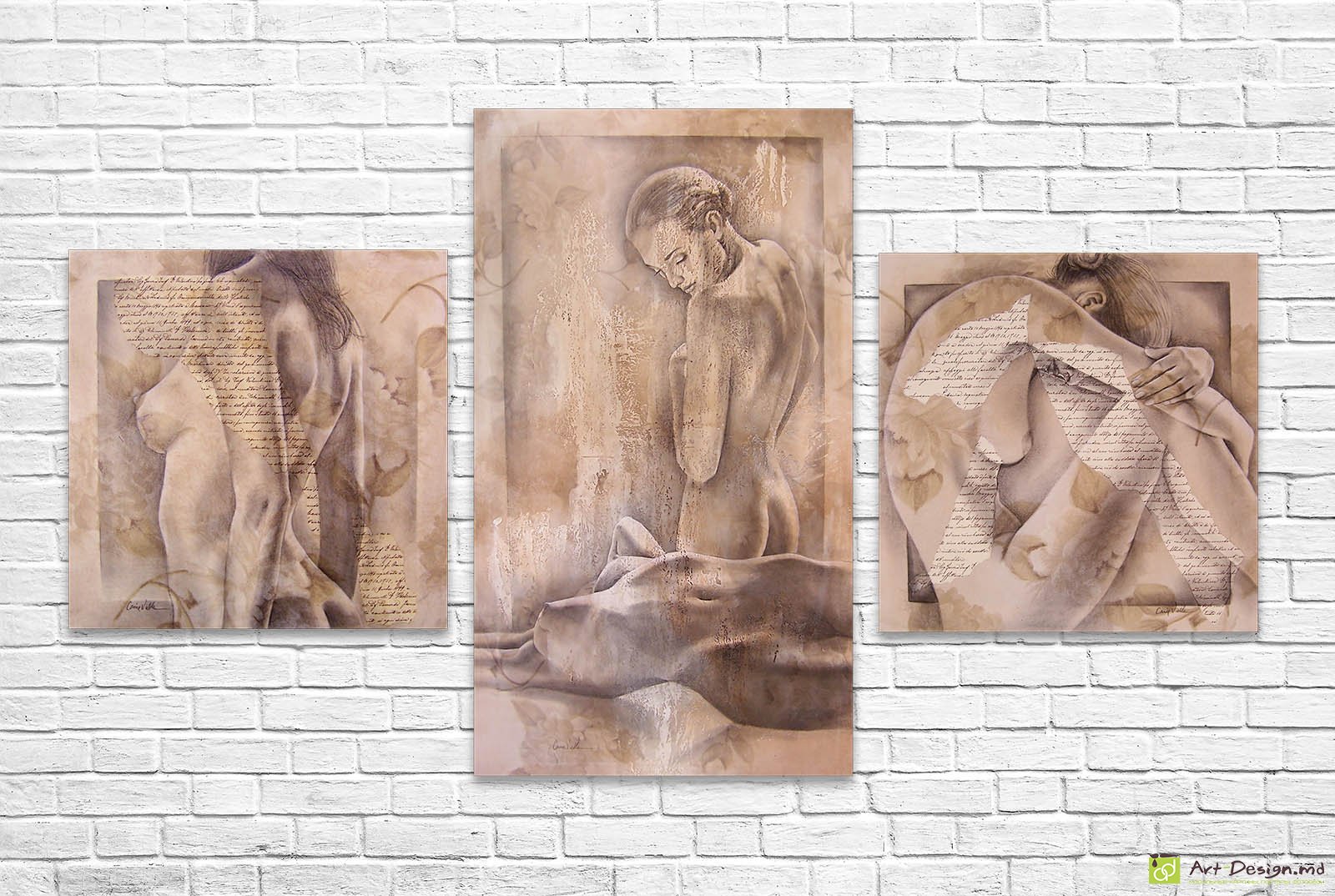 ✅ Модульная картина в теплых тонах сепии с силуэтами и письмами. ✓ Печать фото на холсте в Кишинёве. 🚚 Доставка по Кишиневу. ⭐Винтажные картины - Art-Design.md