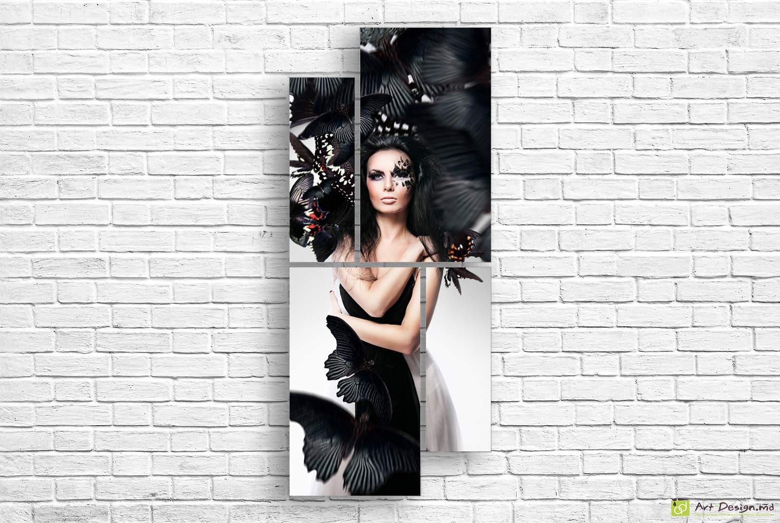 ✅ Модульная картина с девушкой и черными бабочками в темных тонах. ✓ Печать фото на холсте в Кишинёве. 🚚 Доставка по Кишиневу. ⭐Мистические картины - ArtDesign