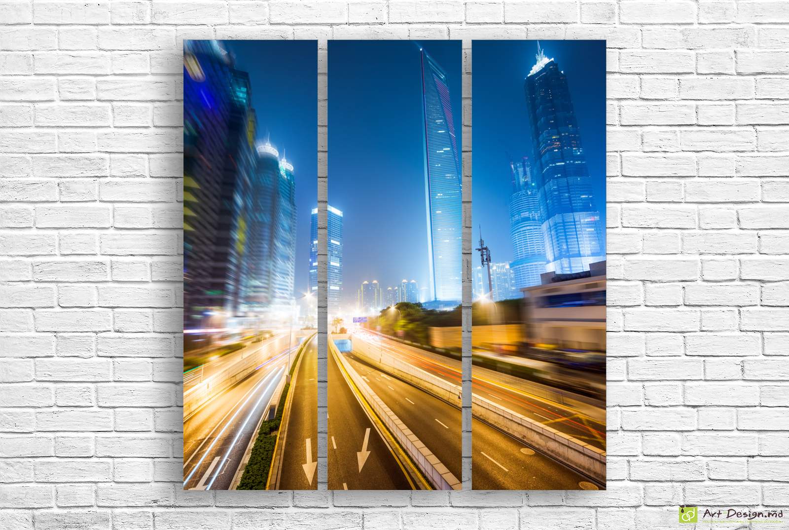 ✅ Модульная картина ночной мегаполис с динамичной перспективой. ✓ Печать на холсте высокого качества. 🚚 Доставка по Кишинёву и Молдове. ⭐ Art-Design.md.