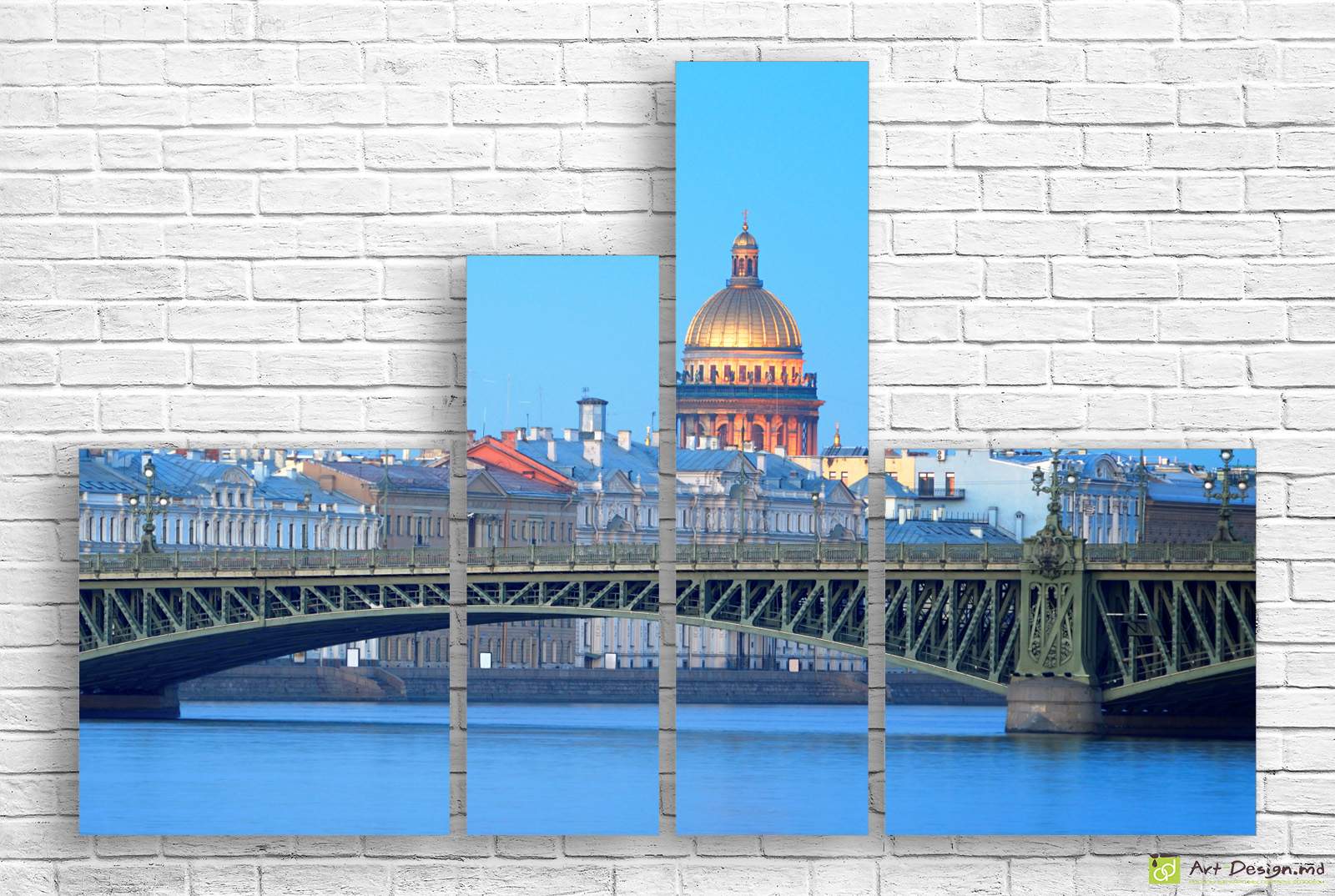 ✅ Модульная картина Исаакиевский собор — панорама Невы и Благовещенский мост. ✓ Золотой купол и синие сумерки. Высокое качество. 🚚 Доставка по Кишинёву. ⭐