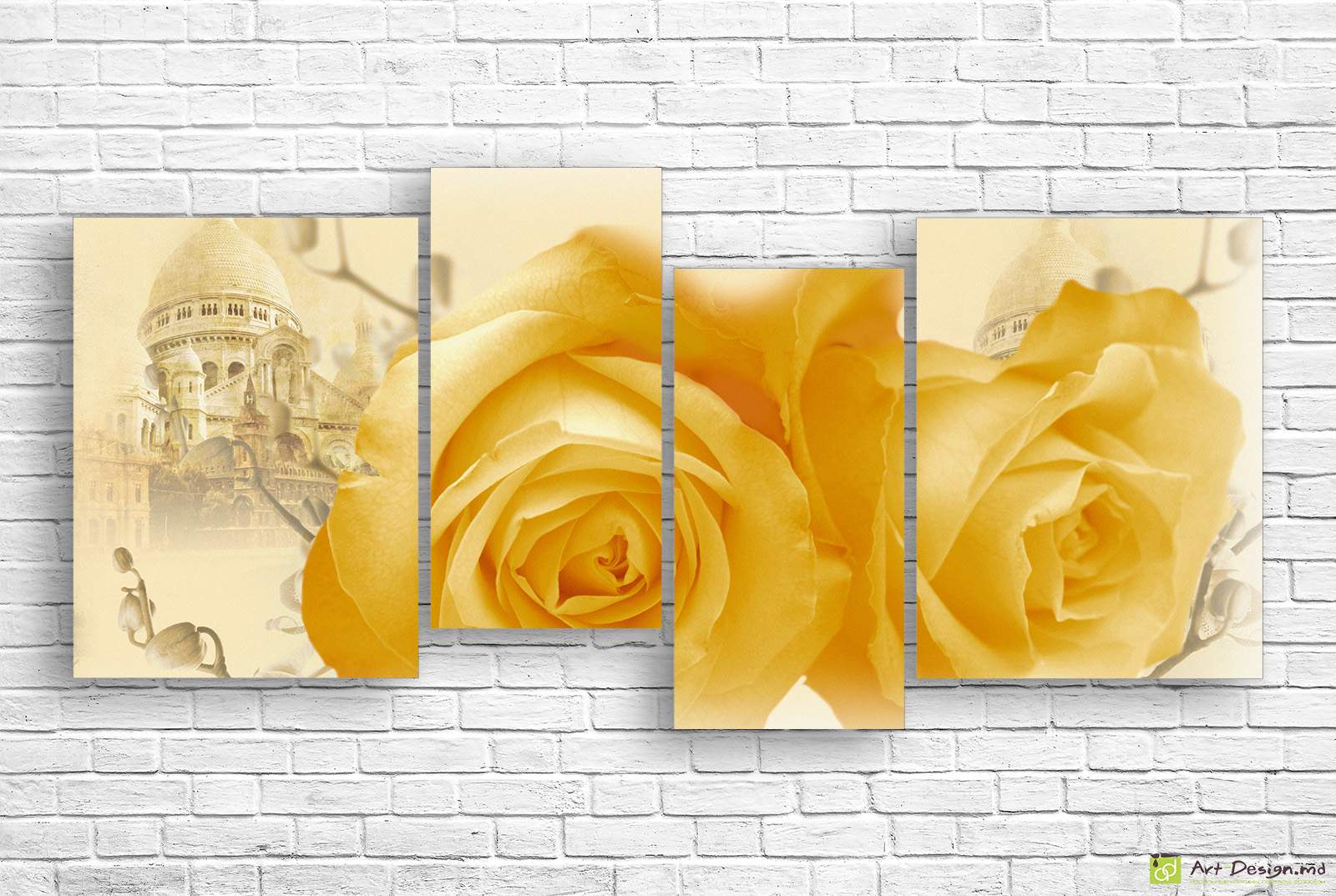✅ Модульная картина Розы на фоне собора. ✓ Модульная картина для современного интерьера на холсте. 🚚 Доставка по Кишинёву и Молдове. ⭐ Картины на холсте - Art-Design.md