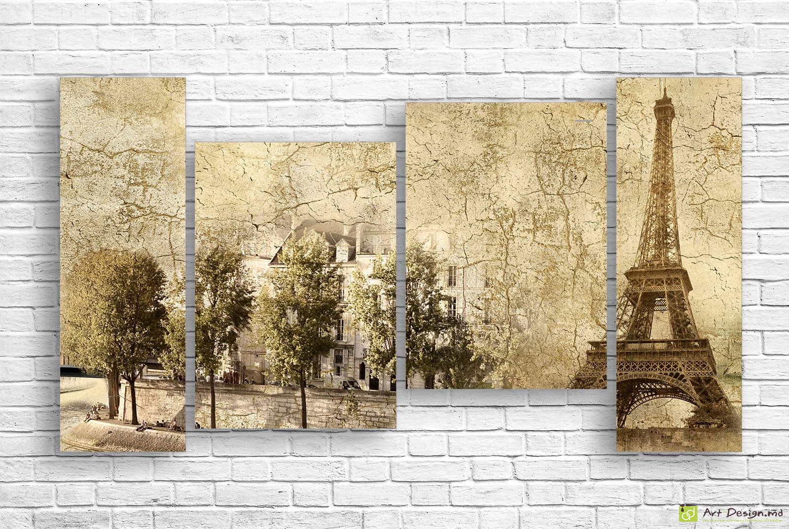 ✅ Модульная картина - Эйфелевая башня на старинном фоне. ✓ Модульная картина для современного интерьера на холсте. 🚚 Доставка по Кишинёву и Молдове. ⭐ Картины на холсте - Art-Design.md