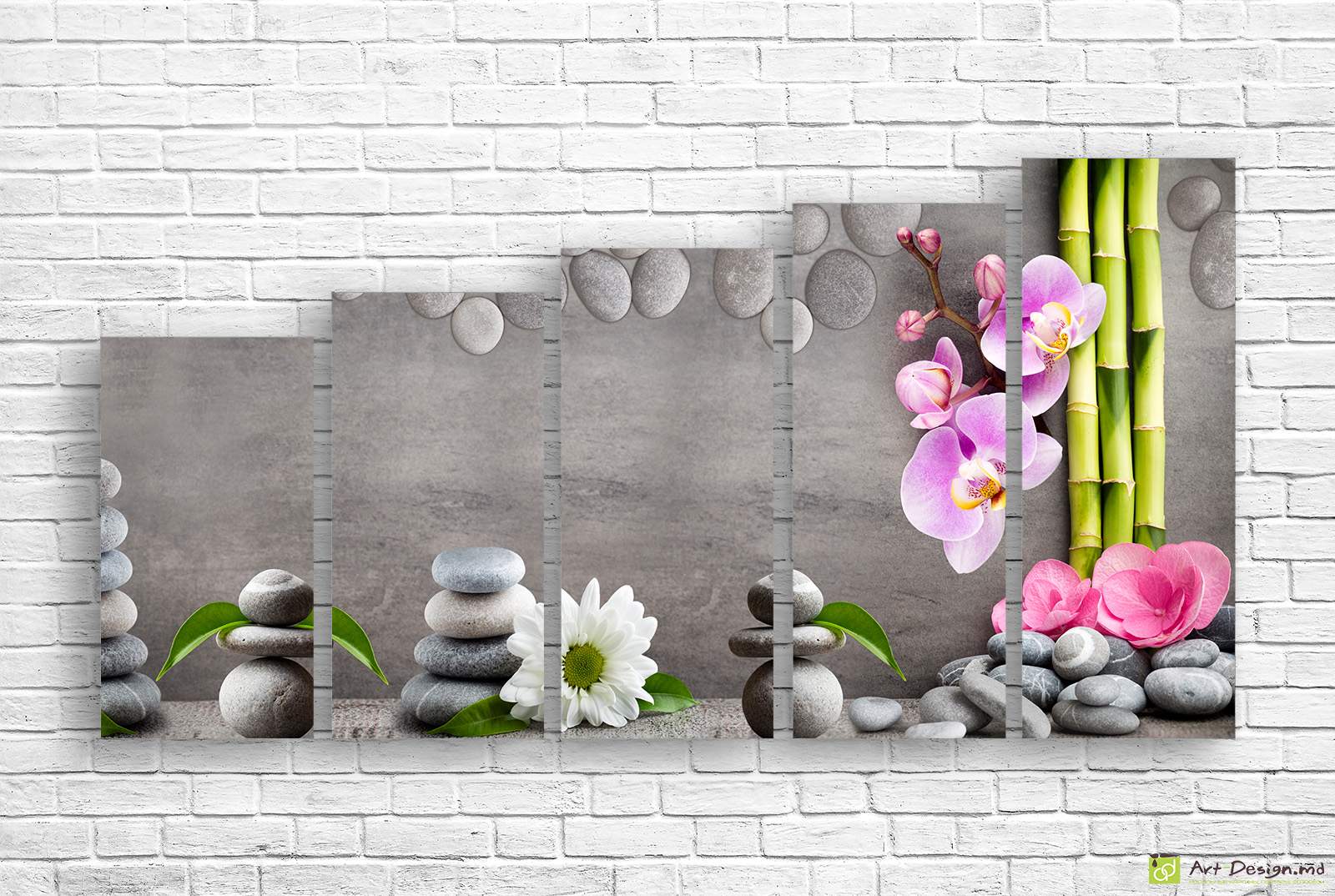 ✅ Модульная картина с белыми орхидеями и морской галькой. ✓ Печать фото на холсте в Кишинёве. 🚚 Доставка по Кишиневу и Молдове. ⭐Нежные картины - Art-Design.md