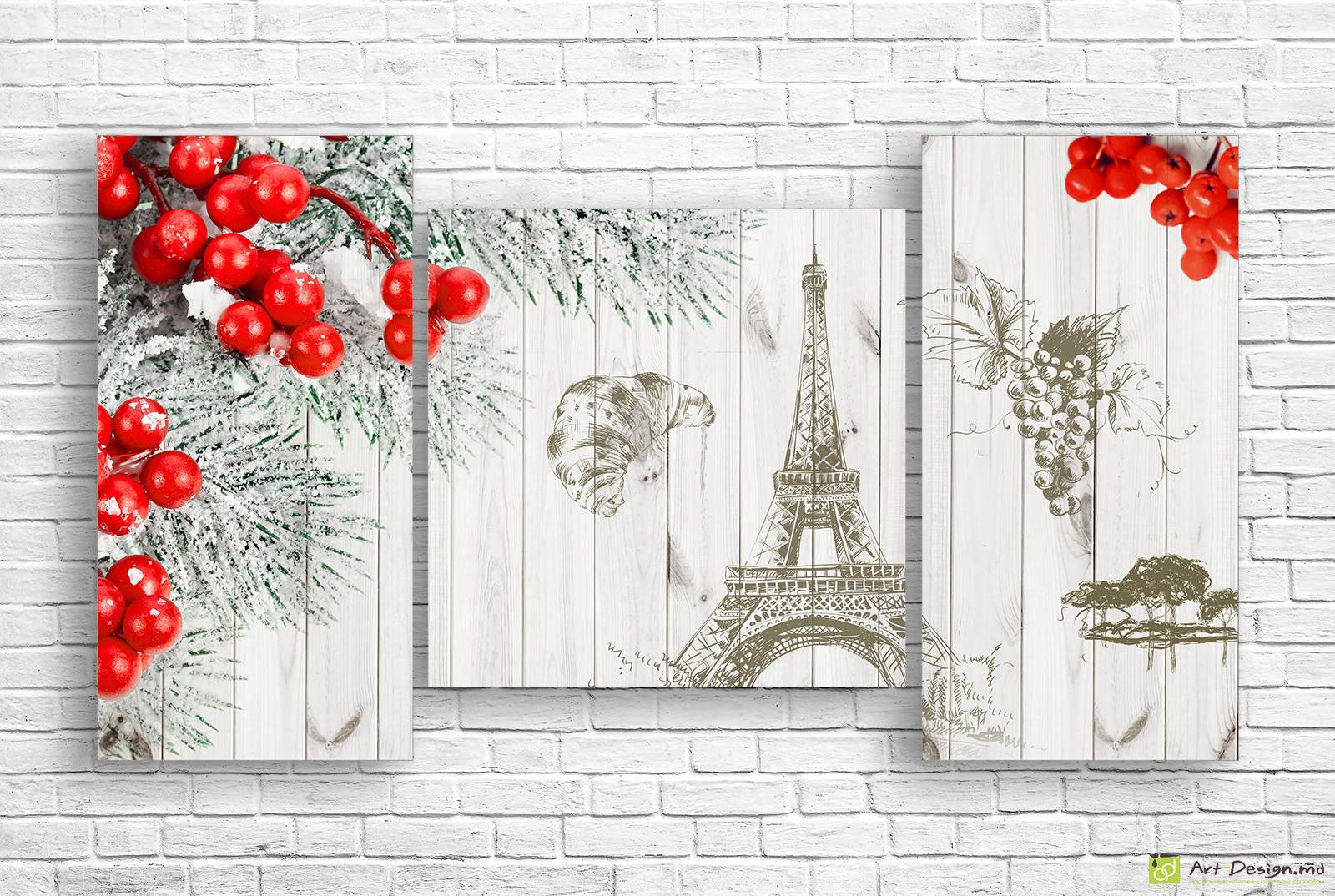 ✅ Модульная картина - Красная рябина на рисованном фоне_3. ✓ Модульная картина для современного интерьера на холсте. 🚚 Доставка по Кишинёву и Молдове. ⭐ Картины на холсте - Art-Design.md