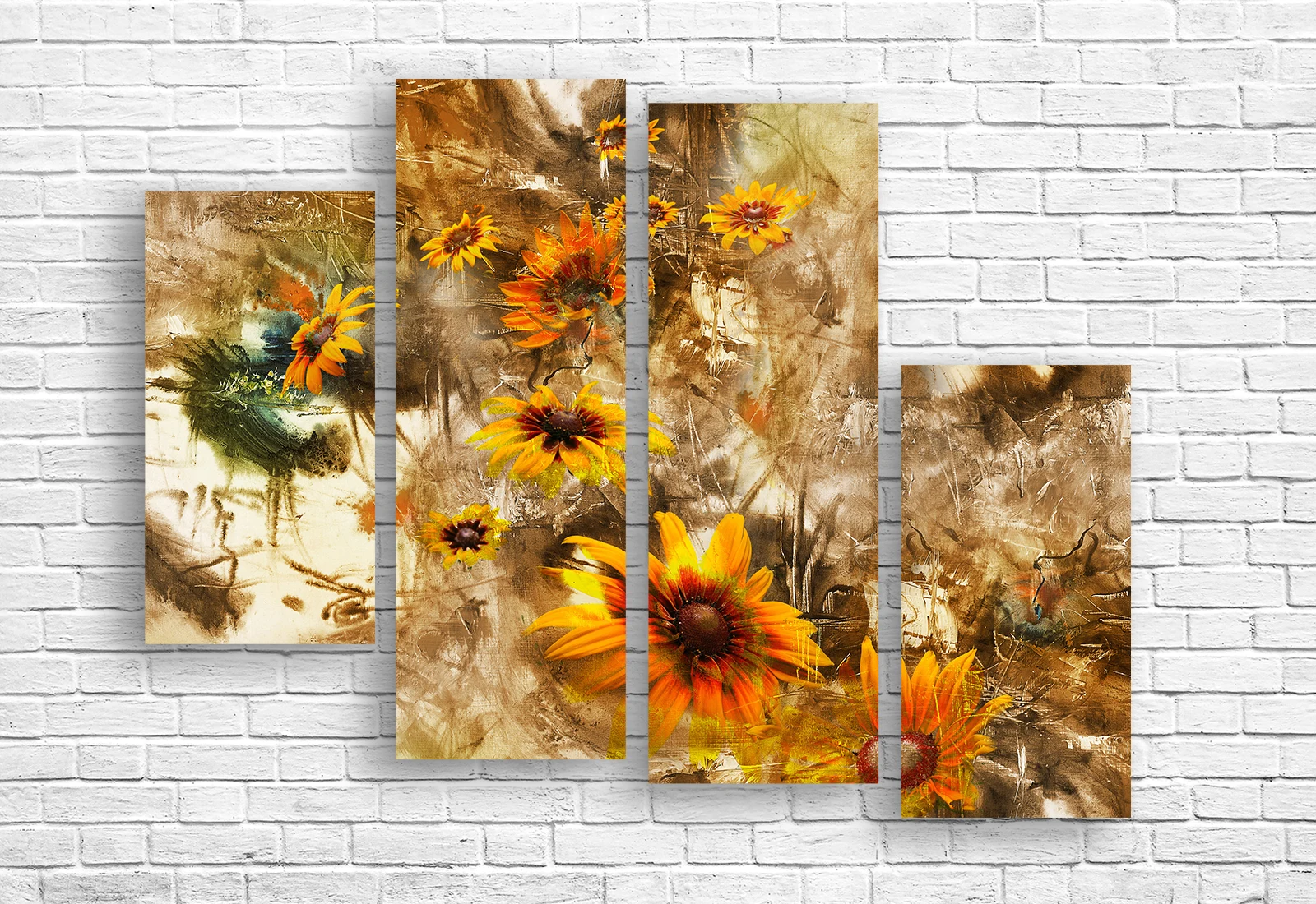 ✅ Модульная картина с подсолнухами в абстрактном стиле. ✓ Тёплый акцент для гостиной или спальни. 🚚 Доставка по Кишинёву и Молдове. ⭐ Art-Design.md.
