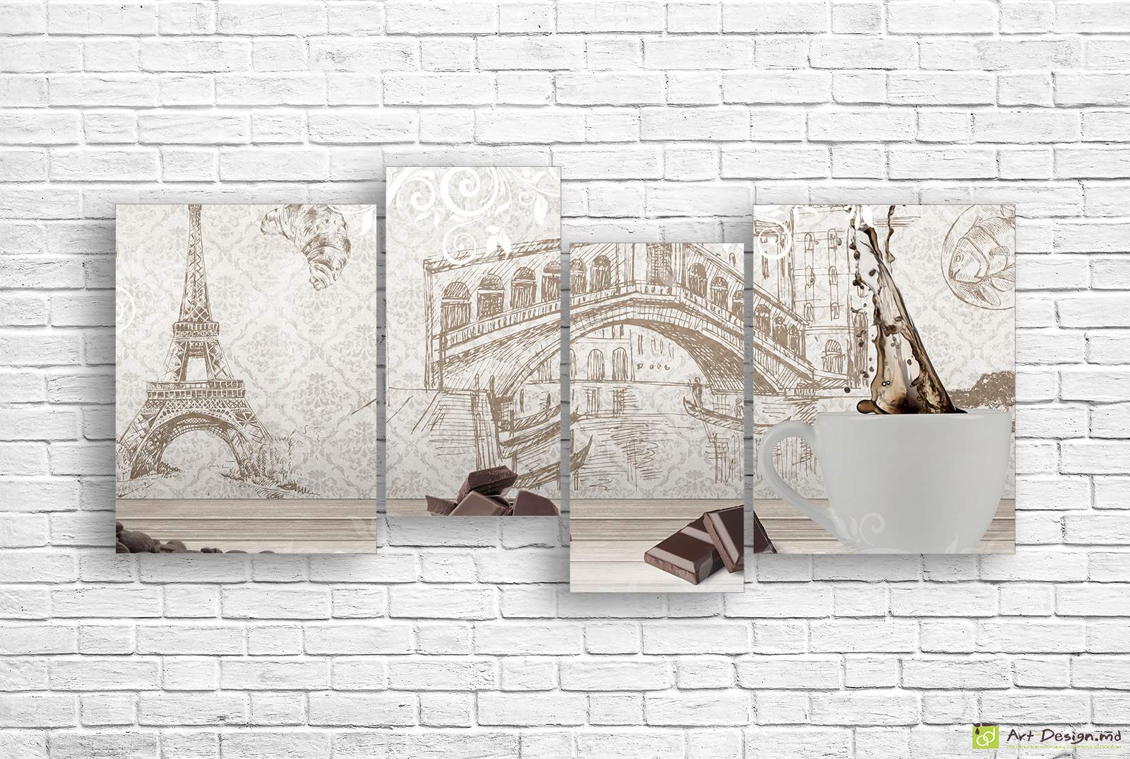 ✅ Модульная картина - Чашка кофе и шоколад. ✓ Модульная картина для современного интерьера на холсте. 🚚 Доставка по Кишинёву и Молдове. ⭐ Картины на холсте - Art-Design.md