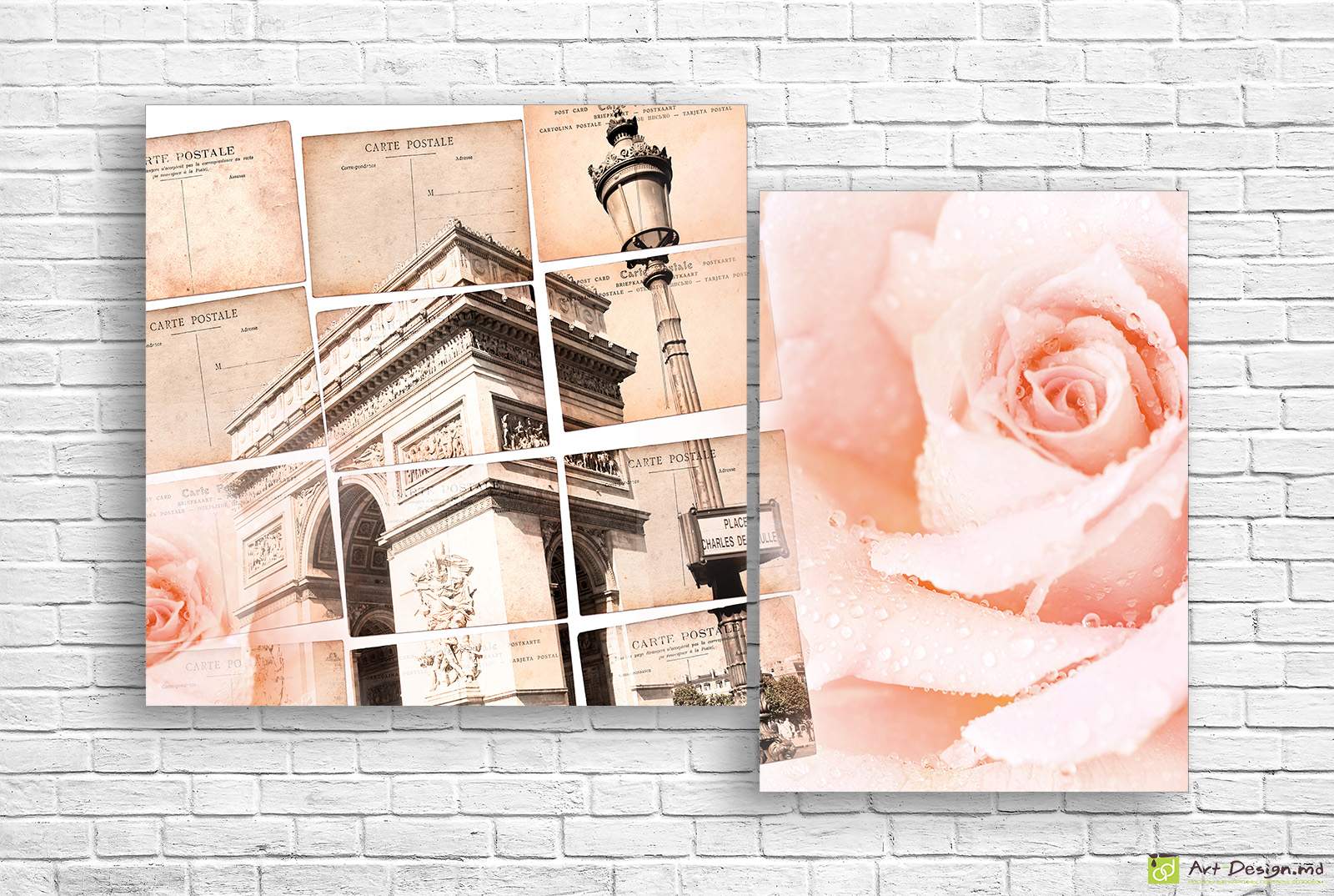 ✅ Модульная картина - Ретро Париж и розы_3. ✓ Модульная картина для современного интерьера на холсте. 🚚 Доставка по Кишинёву и Молдове. ⭐ Картины на холсте - Art-Design.md
