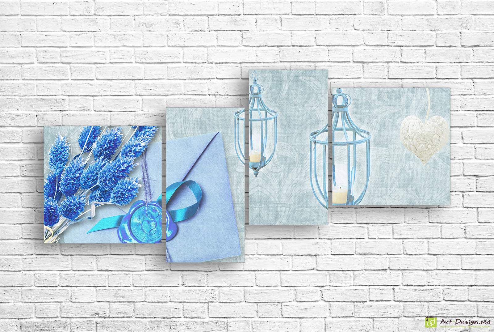 ✅ Модульная картина - Голубой конверт на рисованном фоне. ✓ Модульная картина для современного интерьера на холсте. 🚚 Доставка по Кишинёву и Молдове. ⭐ Картины на холсте - Art-Design.md
