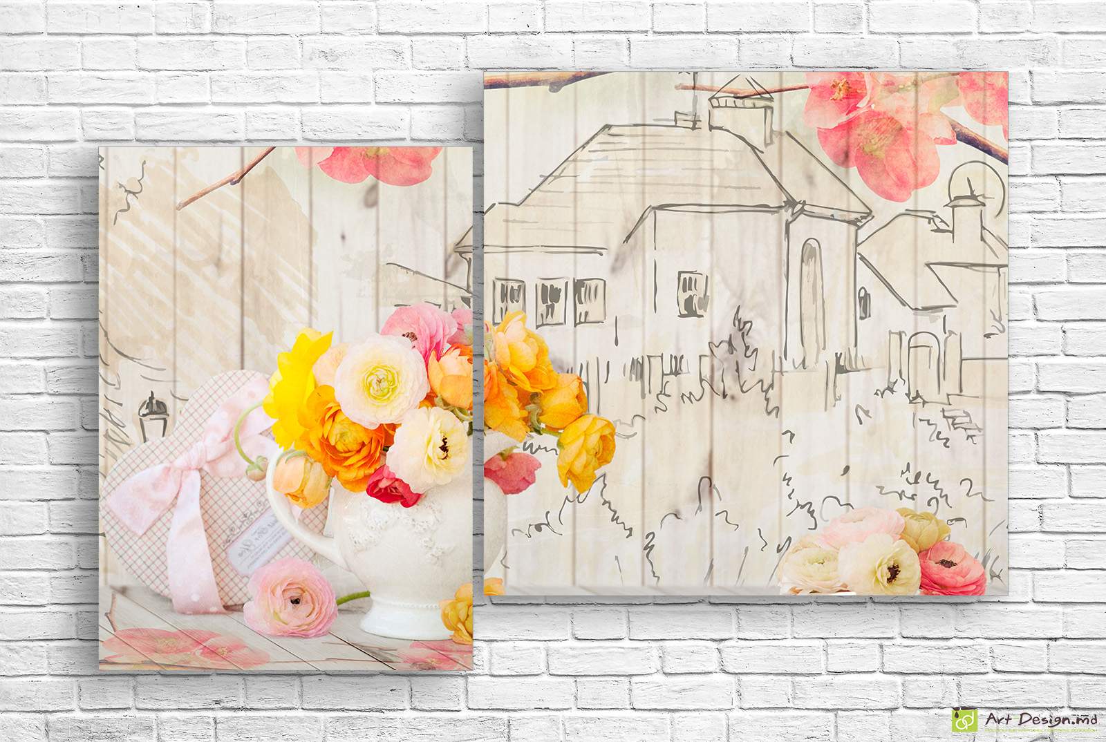 ✅ Модульная картина - Пионы на рисованном фоне_2. ✓ Модульная картина для современного интерьера на холсте. 🚚 Доставка по Кишинёву и Молдове. ⭐ Картины на холсте - Art-Design.md