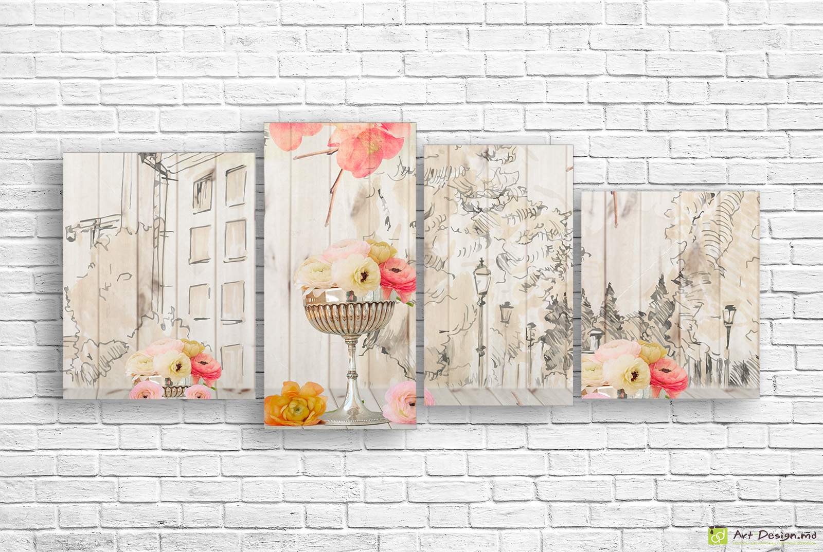 ✅ Модульная картина - Пионы на рисованном фоне_3. ✓ Модульная картина для современного интерьера на холсте. 🚚 Доставка по Кишинёву и Молдове. ⭐ Картины на холсте - Art-Design.md