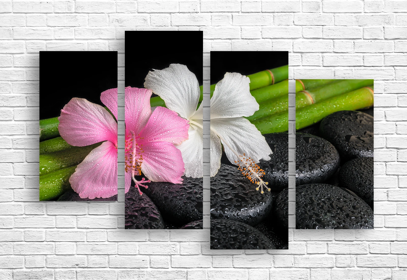 ✅ Модульная картина гибискус дзен ✓ Картины Кишинёв для интерьера от Art-Design.md. ⭐ Фото на холсте Кишинёв и качественный декор на стену Кишинёв. 🚚