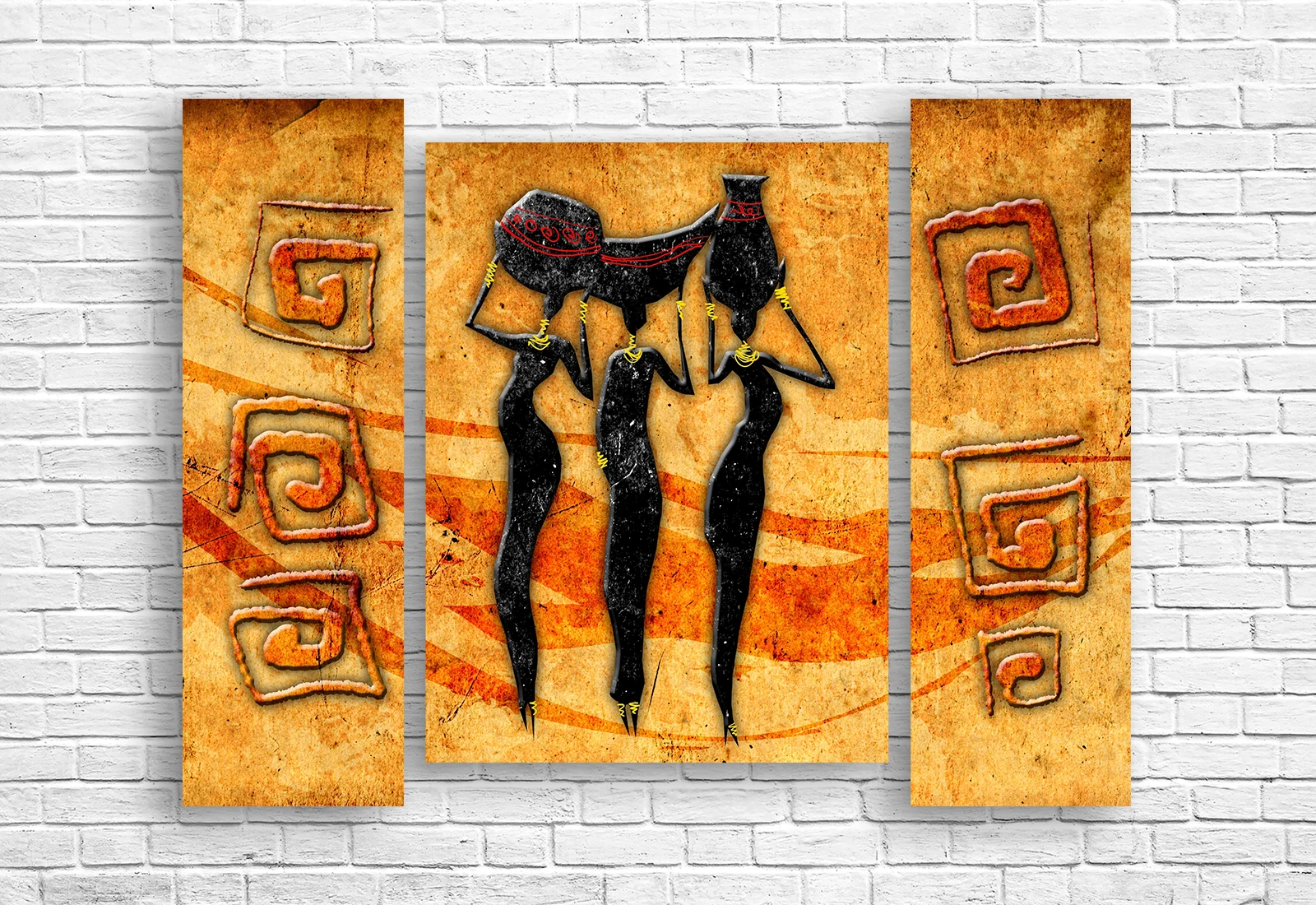 ✅ Модульная картина с этническими танцующими фигурами в тёплой африканской палитре. ✓ Яркий декоративный акцент интерьера. 🚚 Доставка по Молдове. ⭐ Art-Design