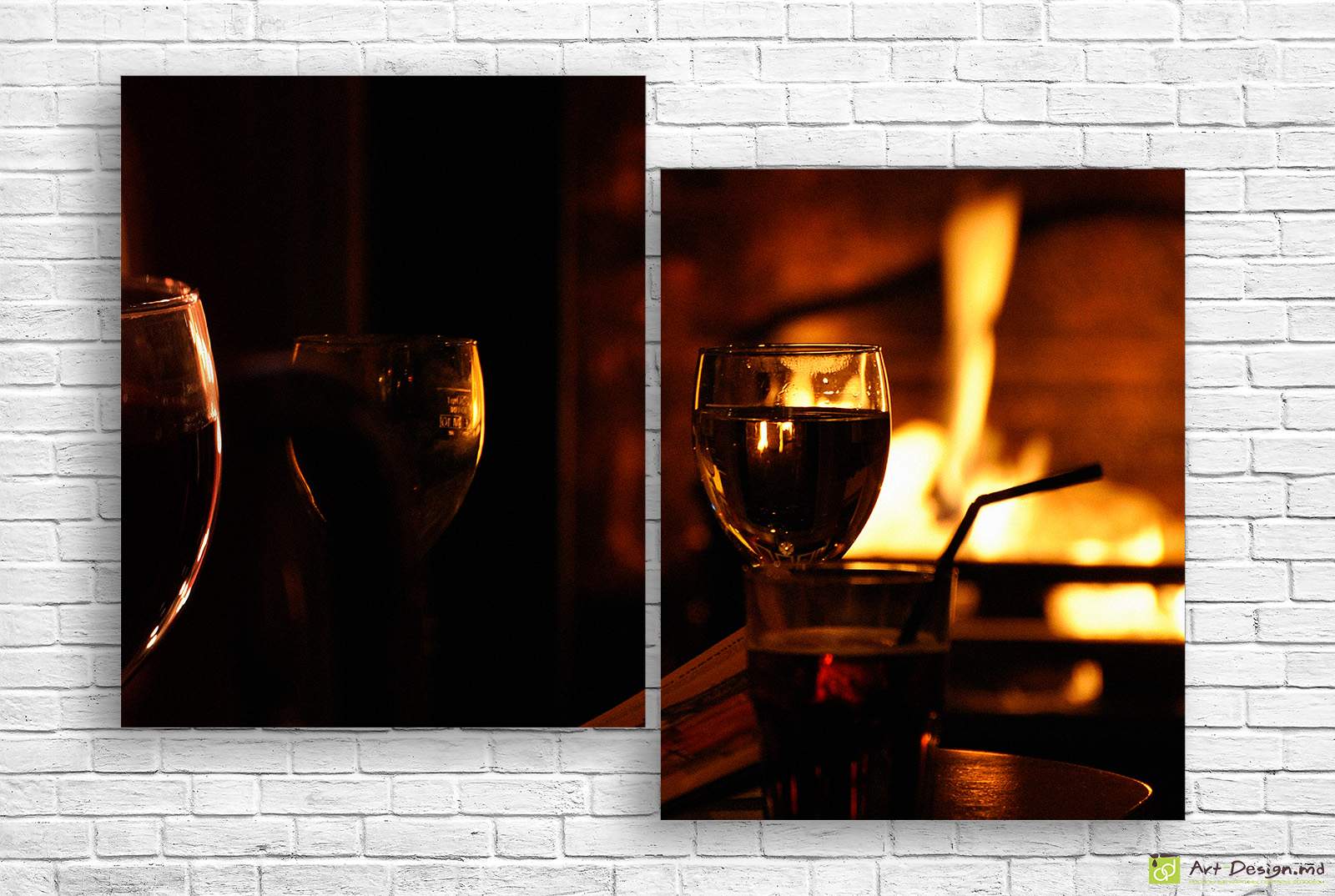 ✅ Модульная картина - Бокал вина вблизи камина. ✓ Модульная картина для современного интерьера на холсте. 🚚 Доставка по Кишинёву и Молдове. ⭐ Картины на холсте - Art-Design.md
