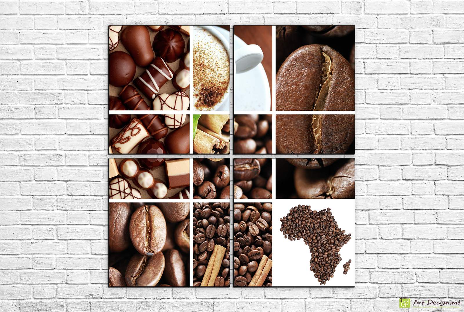 ✅ Модульная картина - Шоколад, зерна кофе, корицa. ✓ Модульная картина для современного интерьера на холсте. 🚚 Доставка по Кишинёву и Молдове. ⭐ Картины на холсте - Art-Design.md