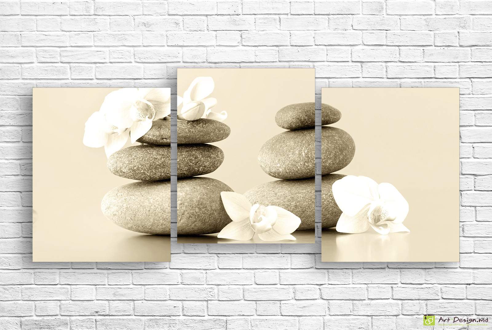 ✅ Модульная картина с белыми орхидеями и камнями дзен гармонии. ✓ Печать фото на холсте в Кишинёве. 🚚 Доставка по Кишиневу. ⭐Дзен картины - Art-Design.md
