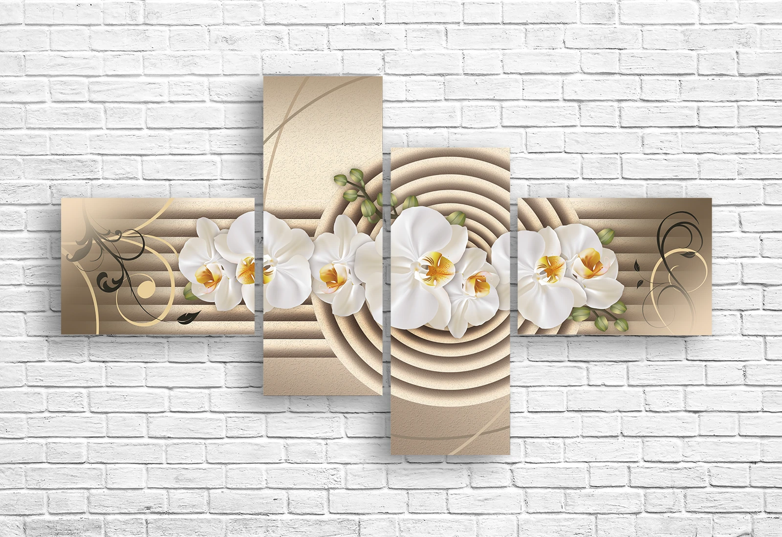 Модульная картина белые орхидеи полиптих для интерьера ✅ печать на холсте высокого качества ✓ спокойная цветочная композиция 🚚 доставка ⭐ Art-Design.md