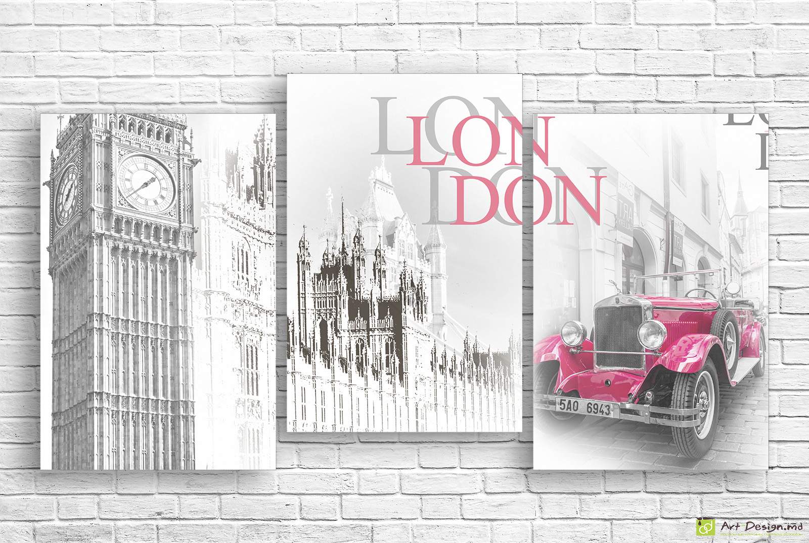 ✅ Модульная картина Лондон и розовое авто ✓ Картины Кишинёв для интерьера от Art-Design.md ⭐ Фото на холсте Кишинёв и качественный декор на стену Кишинёв 🚚