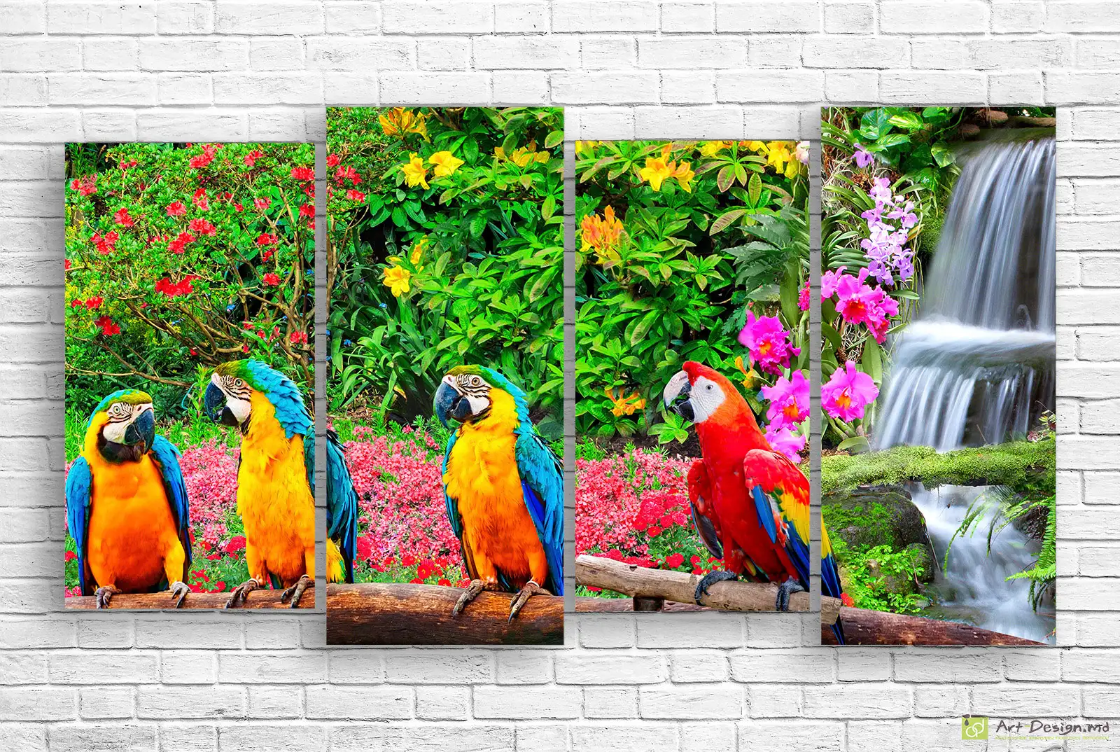 ✅ Модульная картина с тропическим раем и попугаями Ара. ✓ Печать фото на холсте в Кишинёве. 🚚 Доставка по Кишиневу и Молдове. ⭐Тропические картины - Art-Design
