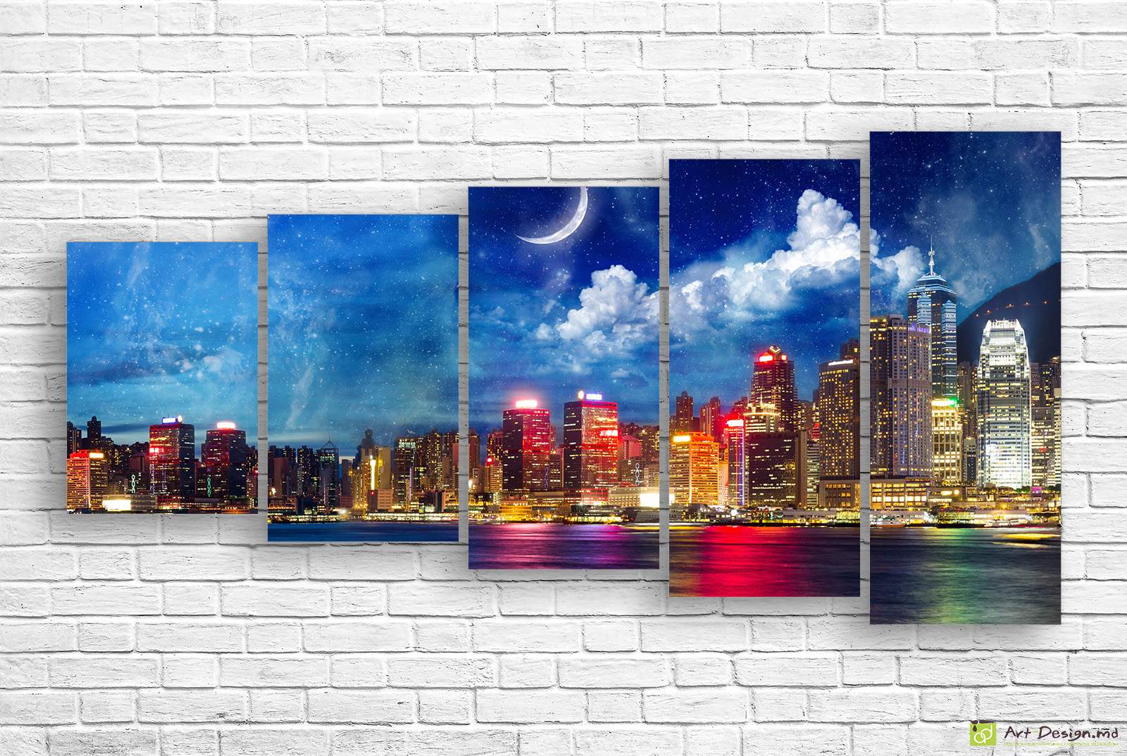 ✅ Модульная картина Гонконг и ночное небо ✓ Картины Кишинёв для интерьера от Art-Design.md ⭐ Фото на холсте Кишинёв и качественный декор на стену Кишинёв 🚚