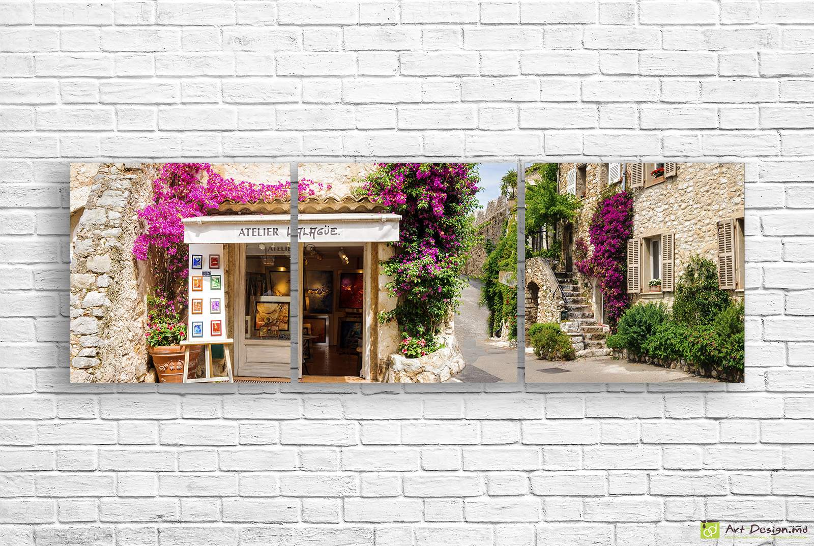 Модульная картина «Прогулка по Провансу» от Art-Design.md — это душевное интерьерное решение, которое привносит в ваш дом атмосферу солнечной Франции и творческого вдохновения. На трех сегментах запечатлена живописная каменная улочка с уютным художественным ателье, украшенным пышными кустами ярко-розовой бугенвиллии.
