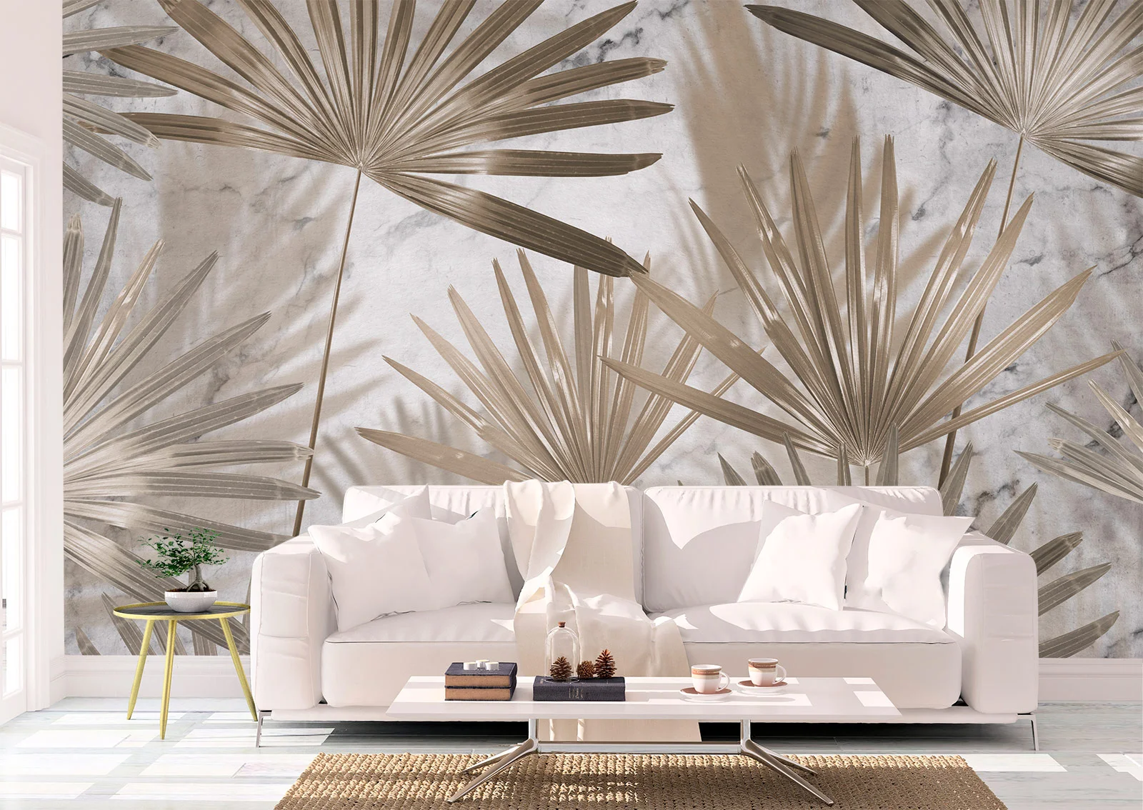 Этот стильные фотообои с крупными пальмовыми листьями на мраморном фоне создаёт атмосферу расслабленности и элегантности. Теплый бежево-коричневый оттенок листьев прекрасно контрастирует с холодной текстурой мрамора, добавляя интерьеру баланс между природной мягкостью и утончённой современностью. Идеально подходит для гостиной, спальни или зоны отдыха, где хочется подчеркнуть вкус, свежесть и индивидуальность. Такой дизайн оживит любое пространство и придаст ему изысканный, но не перегруженный характер.