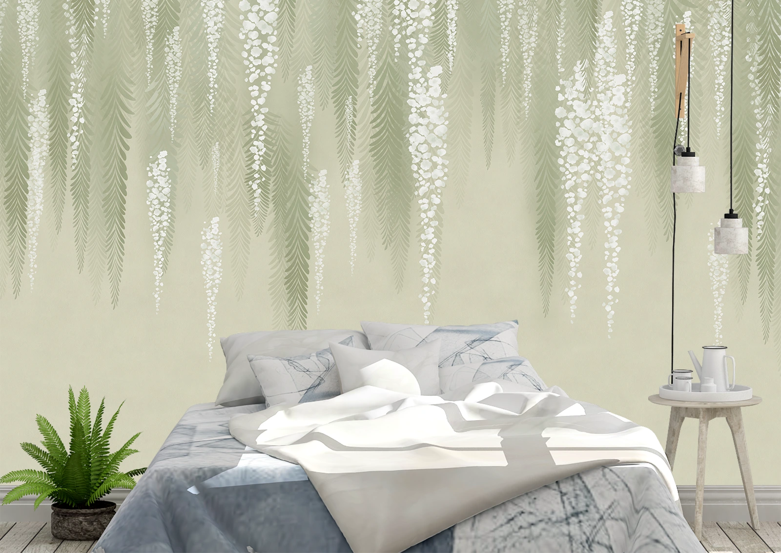 ✅ Элегантные фотообои с зелёными ветвями и белыми цветами. ✓ Подойдут для спальни и гостиной. 🚚 Доставка по Кишинёву и Молдове. ⭐ Art-Design.md