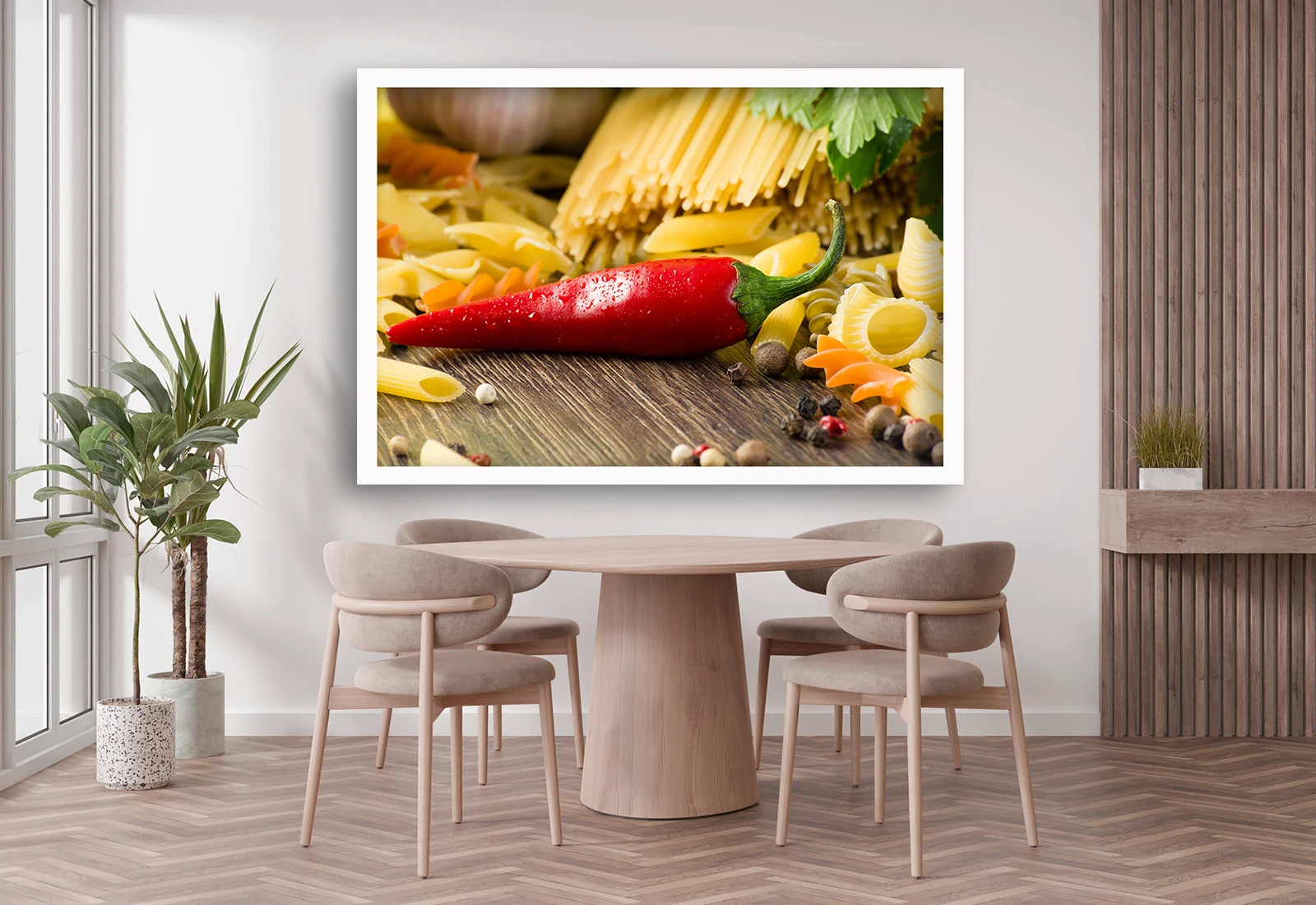 ✅ Постер с макаронами и острым перцем чили в белой раме. ✓ Добавьте пикантности интерьеру! Картина на холсте. 🚚 Доставка по Кишинёву и Молдове. ⭐ Art-Design.md