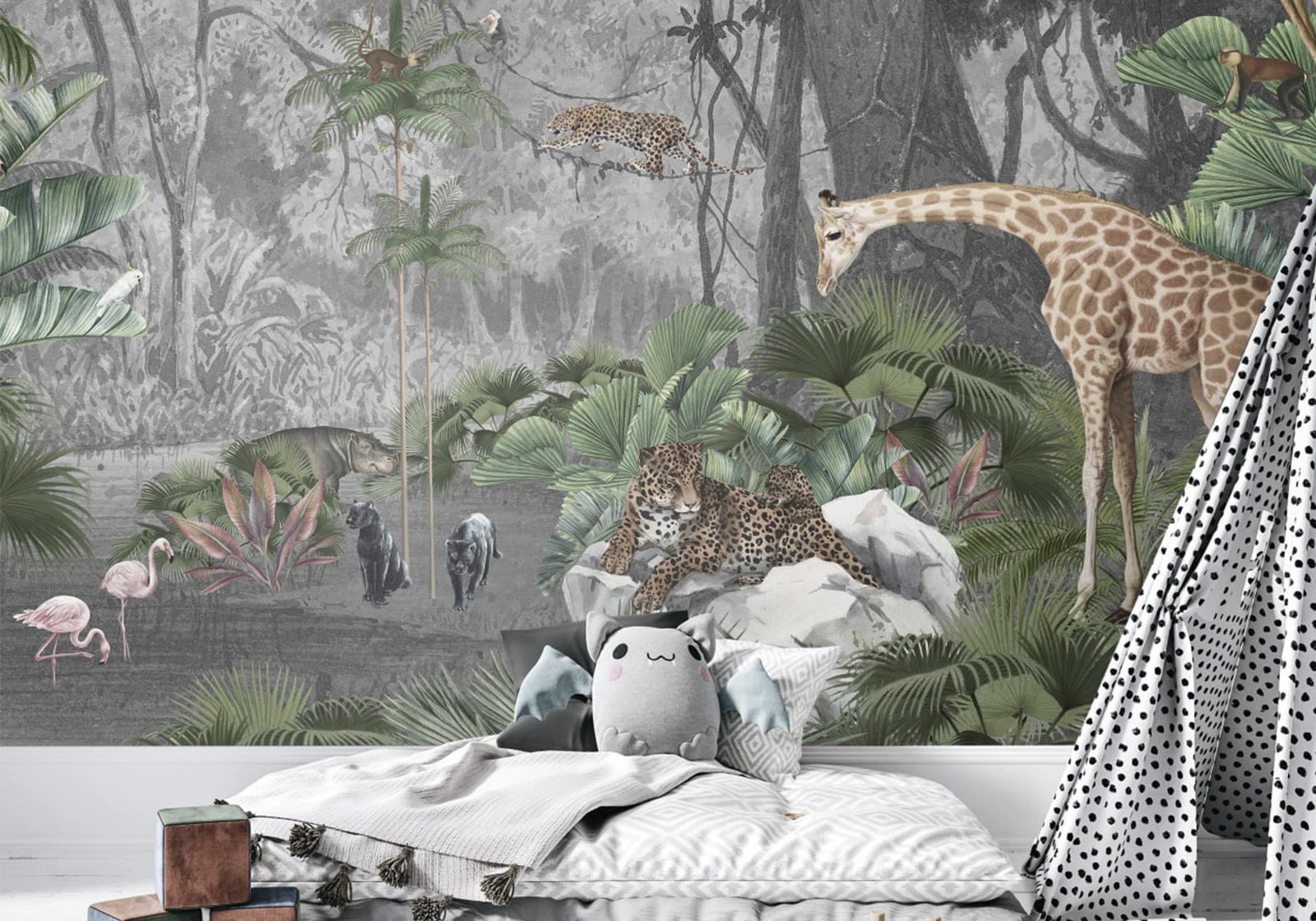 Фотообои для детской комнаты с экзотическими мотивами - это идеальное решение для создания уникального интерьера, который будет вдохновлять и радовать вашего ребёнка. Фотообои с изображением джунглей и тематическими элементами, такими как фотообои дети джунгли и фотообои сафари, погружают в мир дикой природы, пробуждая интерес и воображение.