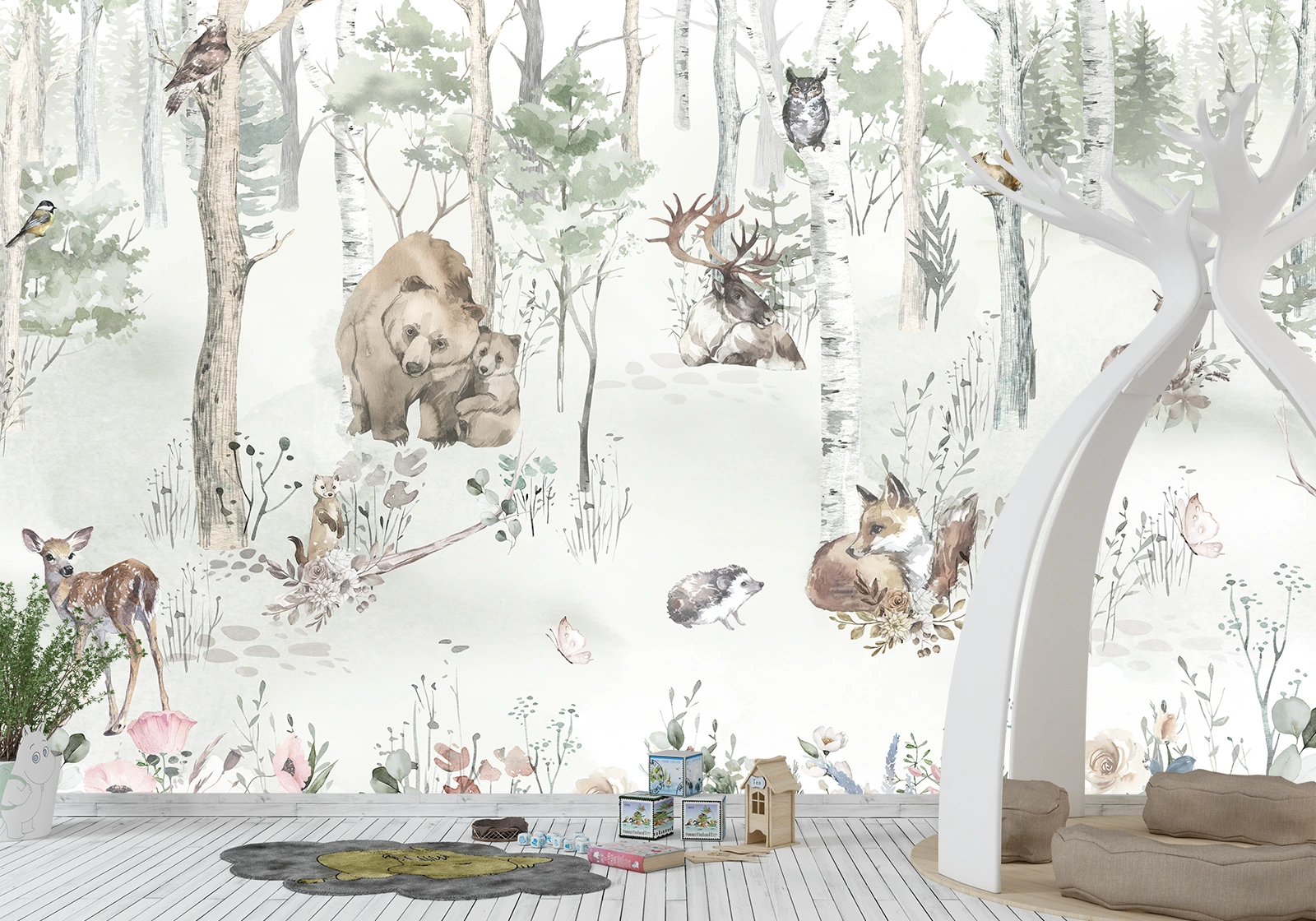 ✅ Фотообои с медвежатами, оленями и лисами. ✓ Волшебный лес в детской комнате. Обои на стену в детскую. 🚚 Доставка по Кишинёву и Молдове. ⭐ Art-Design.md