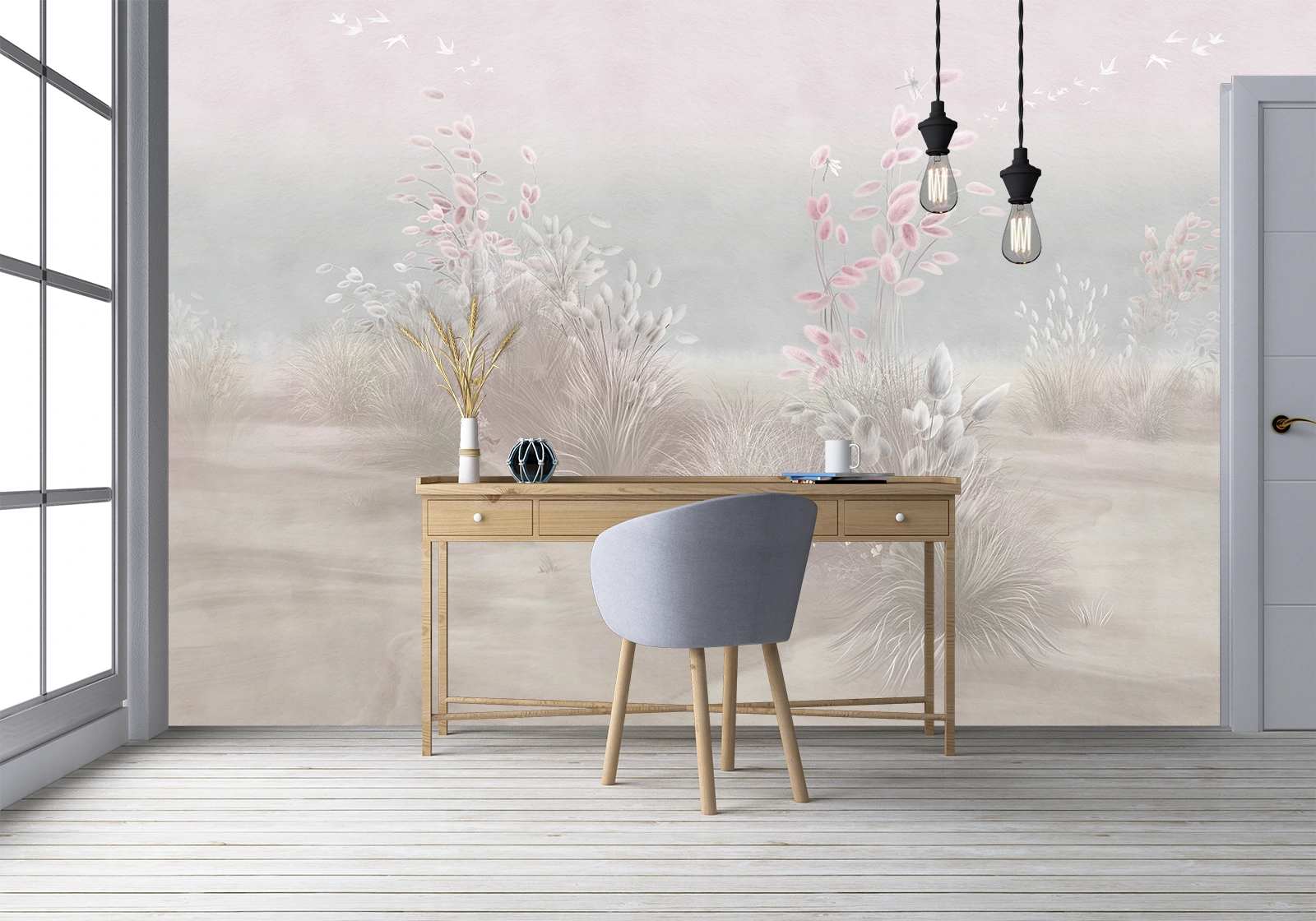 ✅ Фотообои с полевыми травами в мягких оттенках розового и серого создают атмосферу уюта. ✓ Идеальны для спальни или кабинета. 🚚Доставка по Кишинёву и Молдове.