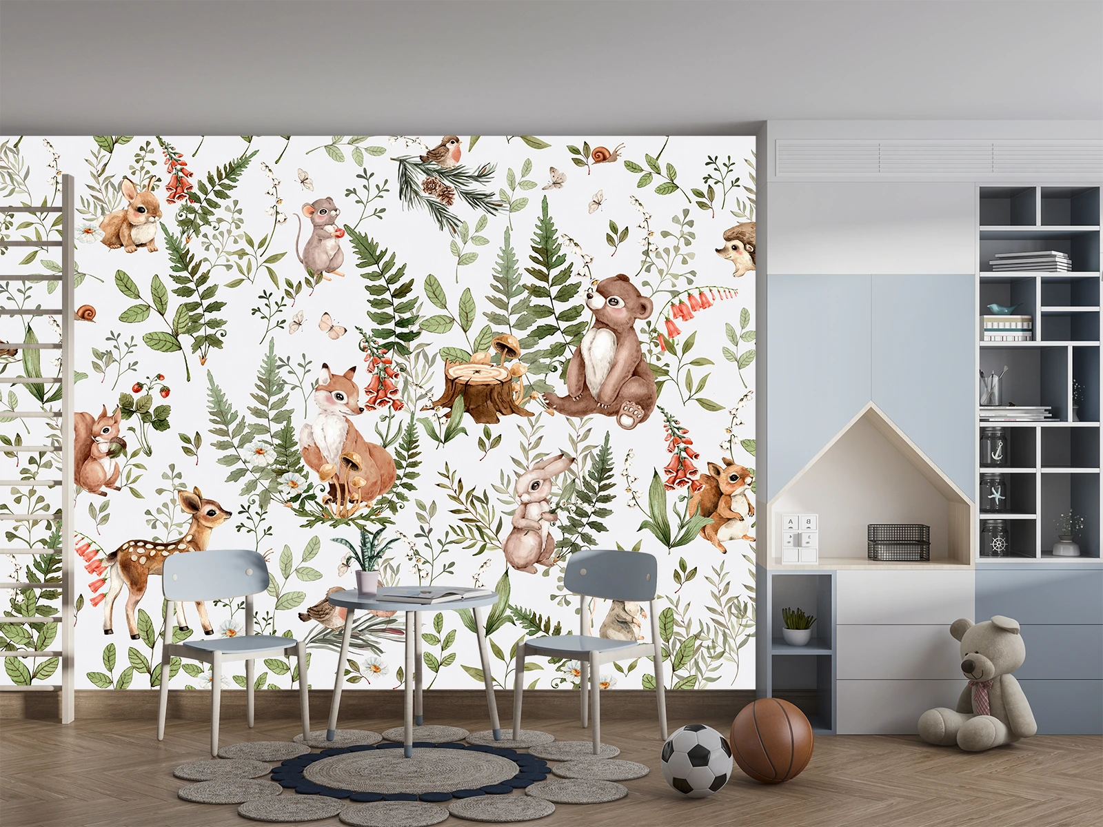 Очаровательные фотообои детские с лесными животными превратят детскую комнату в волшебный уголок природы. Фотообои животные такие как фотообои зайчик, фотообои медвежонок, фотообои олень, фотообои белочка, и фотообои лиса создают атмосферу тепла и радости, вдохновляя детей на игру и фантазии. Мягкие тона делают интерьер детской уютным и гармоничным.