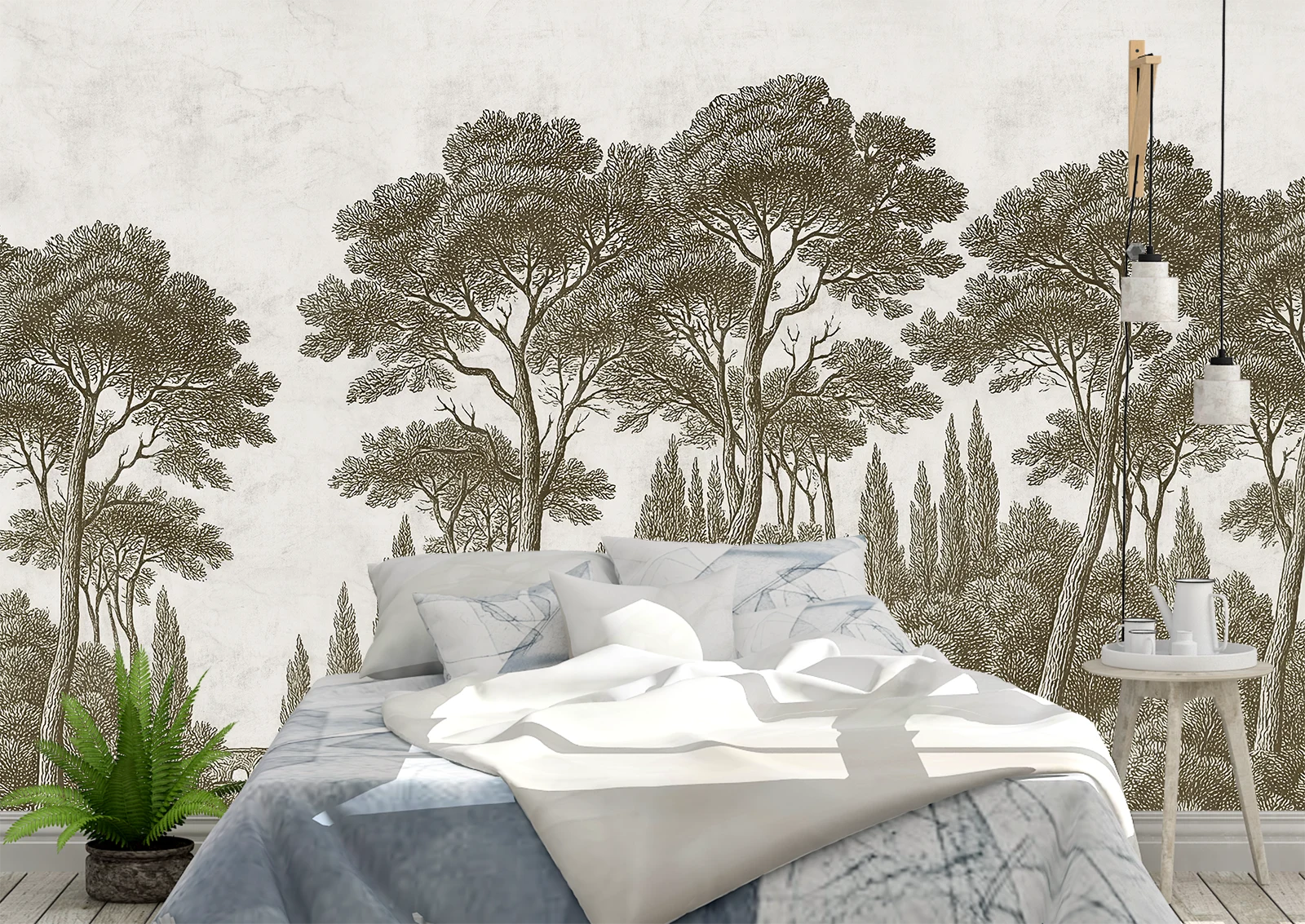 🌳 Фотообои для спальни с графичным лесом и изящными деревьями. ✓ Придают спокойствие и глубину интерьеру. 🚚 Доставка по Кишинёву и Молдове. ⭐ Art-Design.md