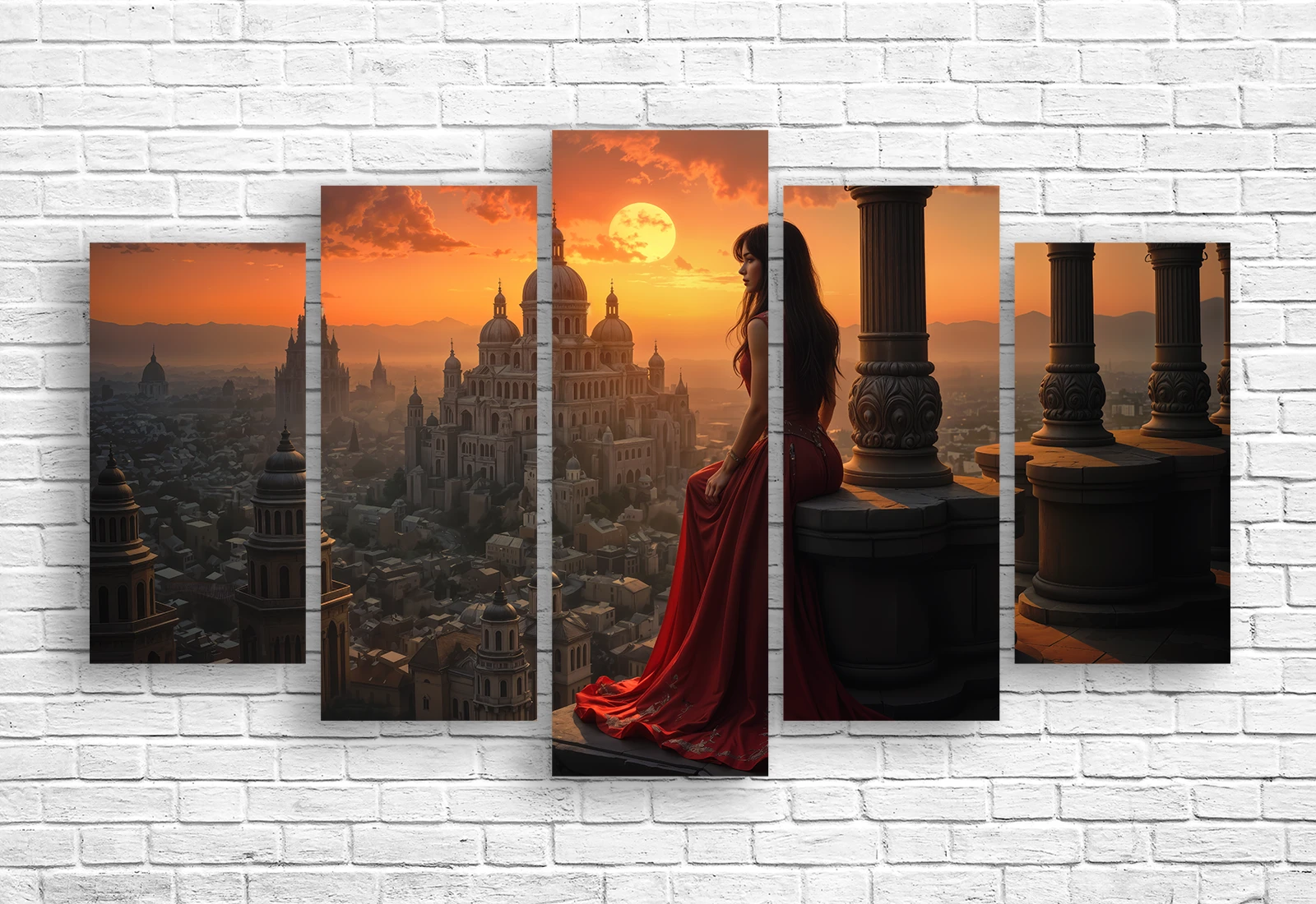 ✅ Модульная картина: девушка в красном. ✓ Печать фото на холсте в Кишинёве. Полет над городом, страсть и стиль. 🚚 Доставка по Молдове. ⭐ Art-Design.md