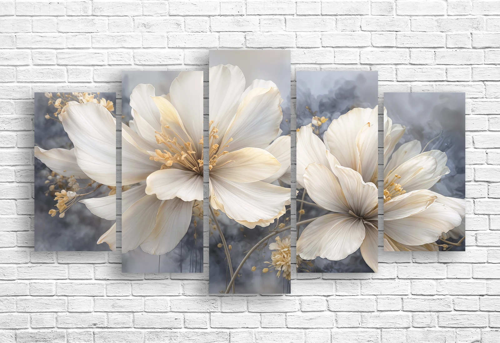 Модульная картина с невероятно нежным и утонченным сюжетом, представляющая собой флористическую композицию из пяти модулей с изображением распустившихся магнолий, станет идеальным украшением вашего интерьера.