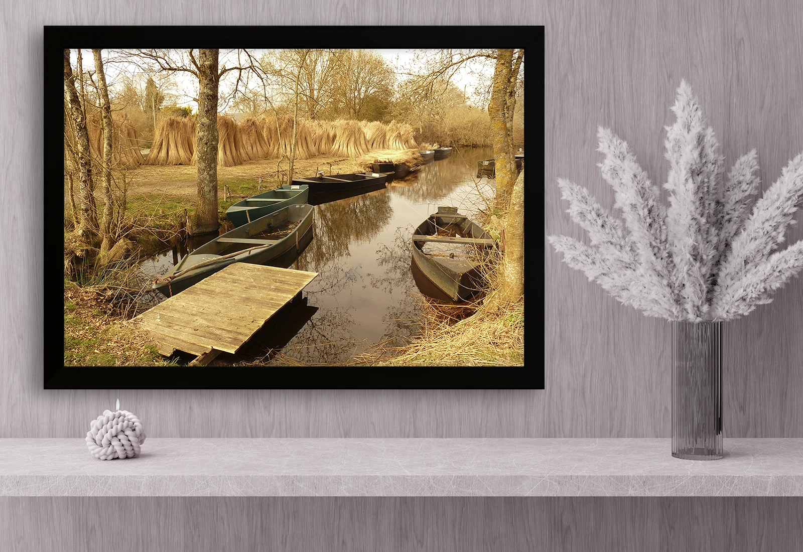 ✅ Картины в рамах Кишинёв с уютным природным пейзажем. ✓ Река, лодки, деревья и тёплые осенние оттенки. 🚚 Доставка по Кишинёву и Молдове. ⭐ Art-Design.md.