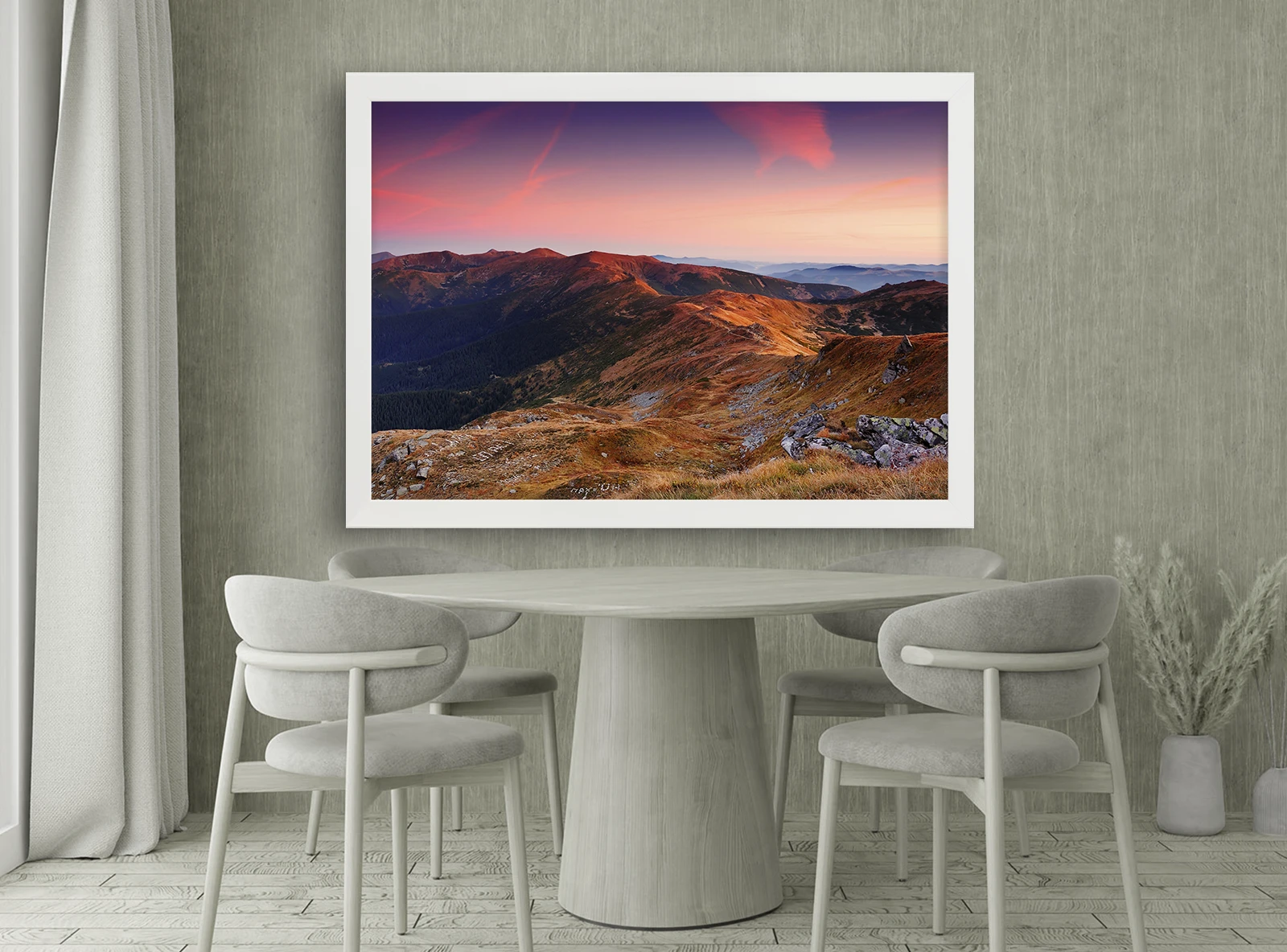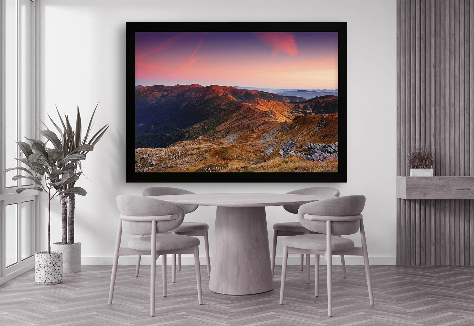 ✅ Картины в рамах Кишинёв с горным пейзажем на закате. ✓ Тёплые оттенки неба, хребты и глубина пространства. 🚚 Доставка по Кишинёву и Молдове. ⭐ Art-Design.md.