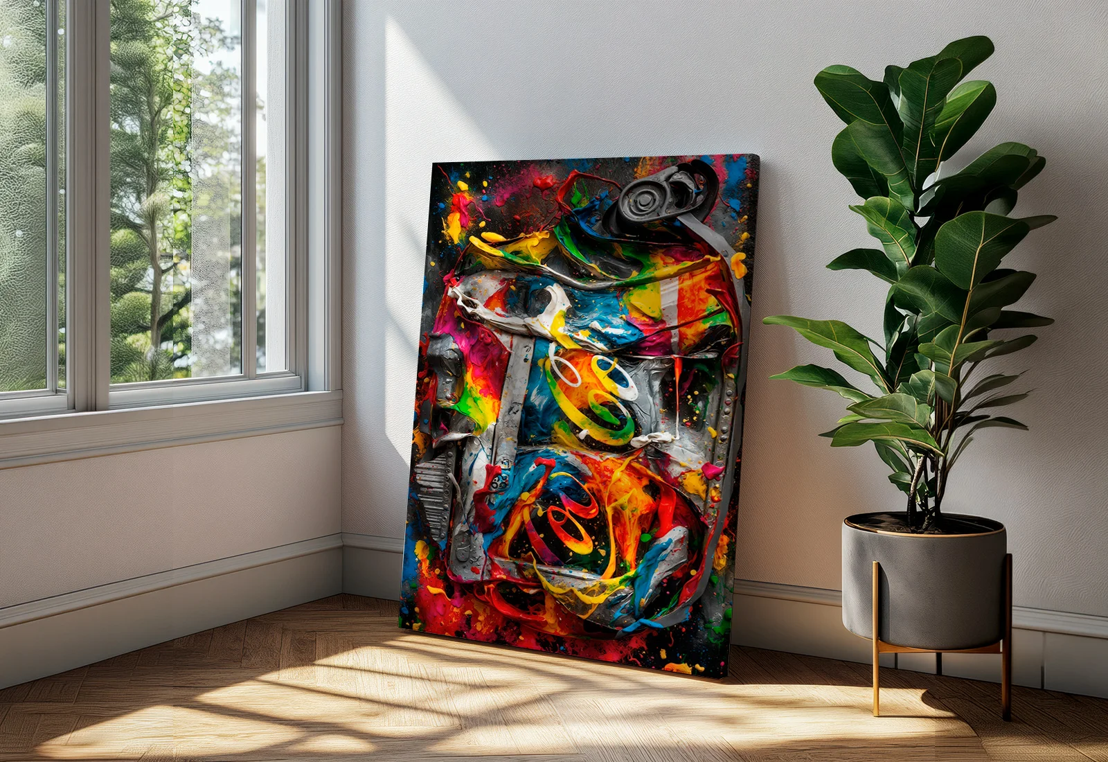 Я смотрю на этот холст и чувствую невероятный взрыв цвета и творческой свободы. Это высококачественная латексная печать на натуральном холсте, представляющая культовый предмет массовой культуры — жестяную банку — в смелой абстрактной интерпретации.