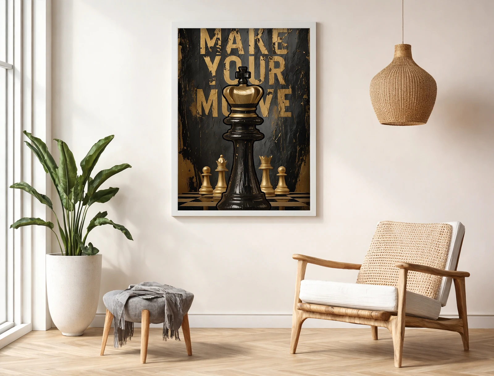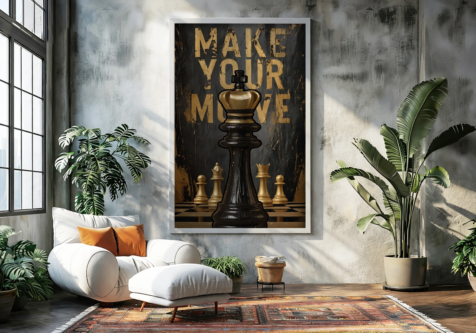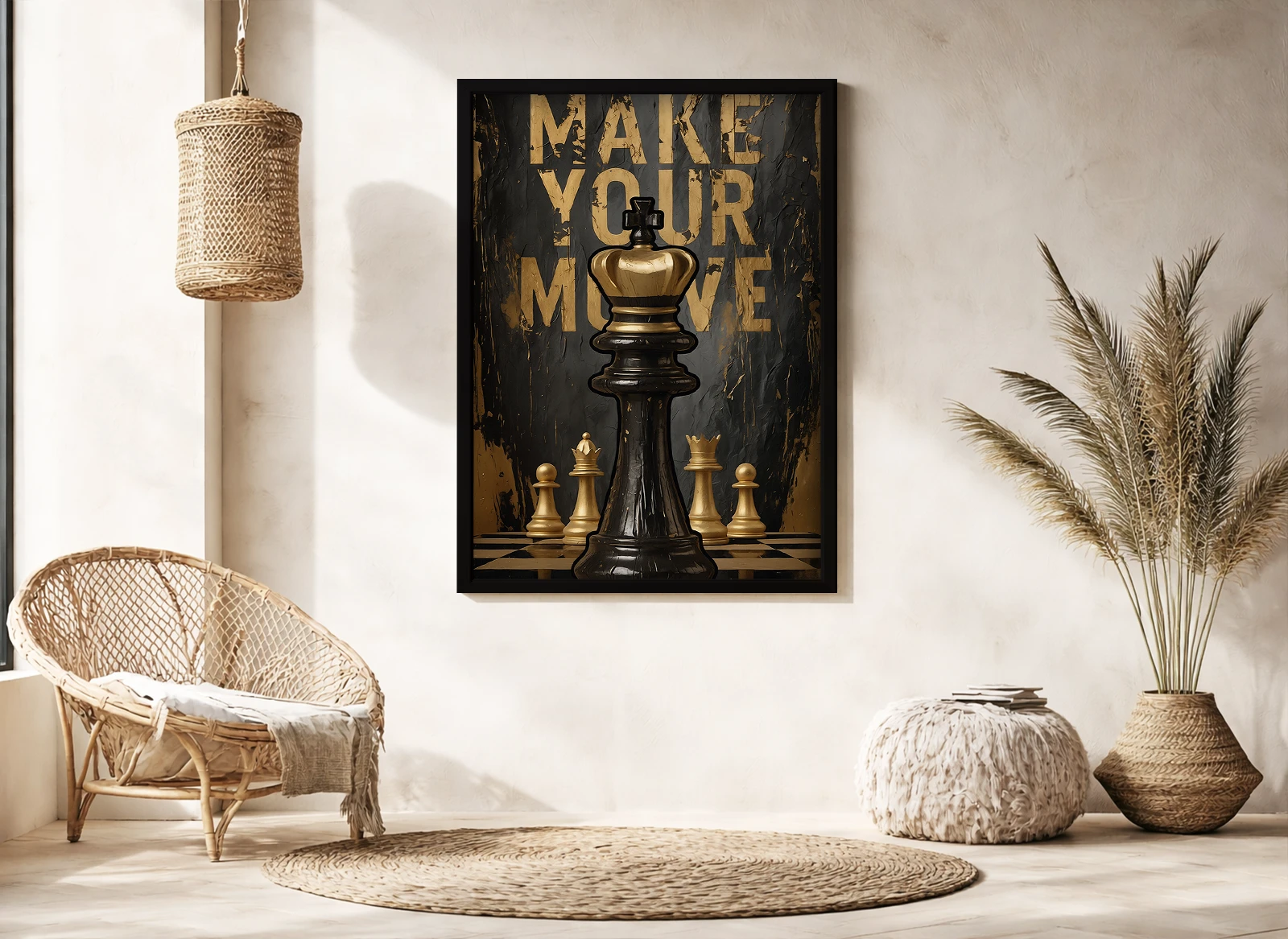 Эта работа идеально вписывается в современный интерьер, добавляя характер и смысл пространству. Она не просто украшает стену — она задаёт настроение, вдохновляет думать стратегически и двигаться вперёд.
