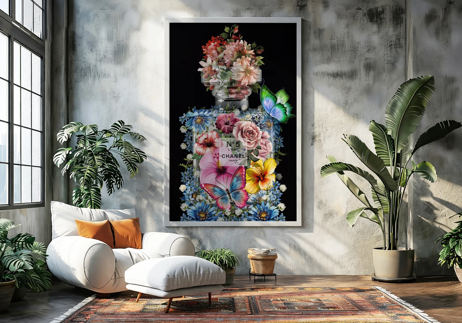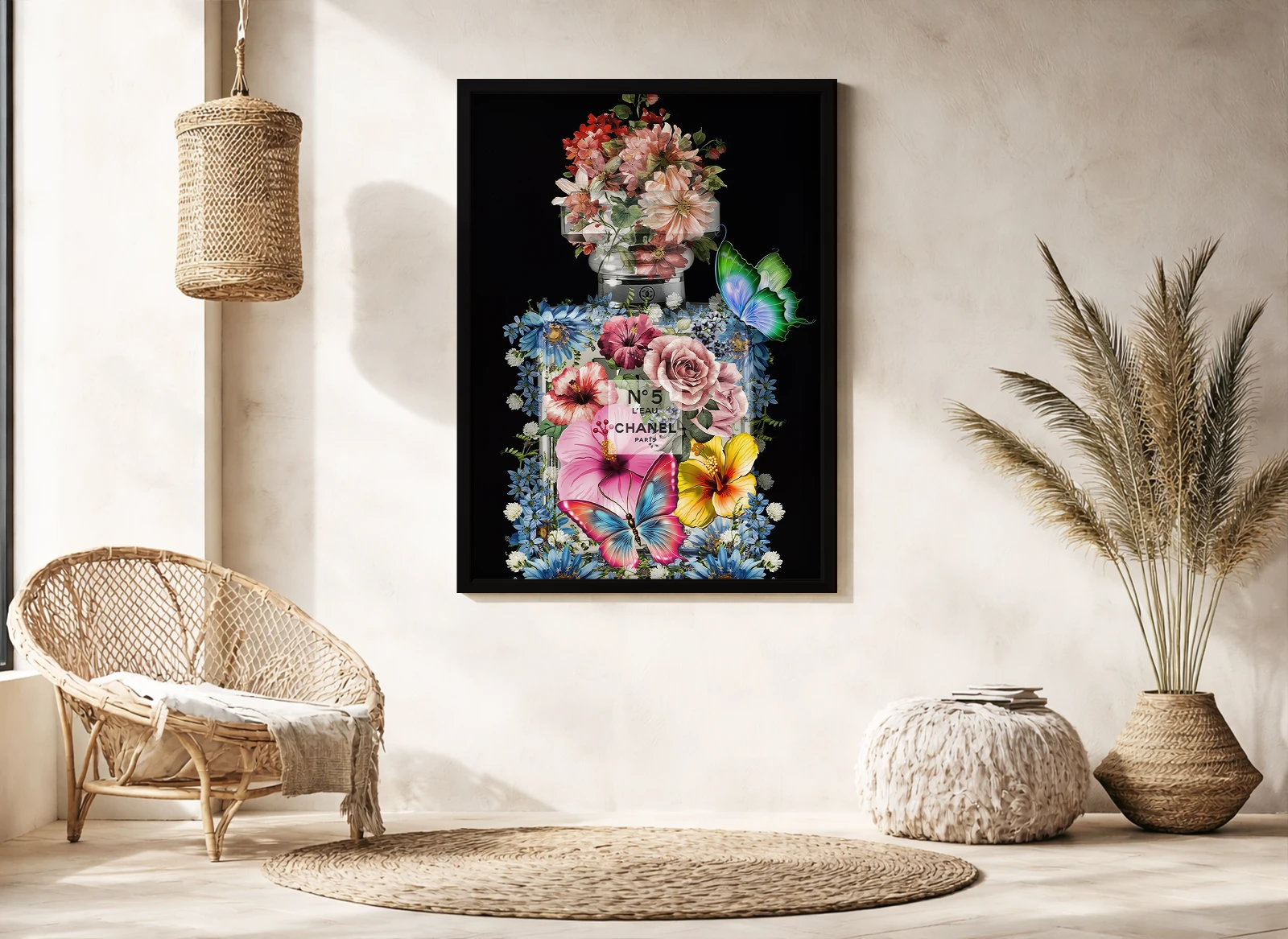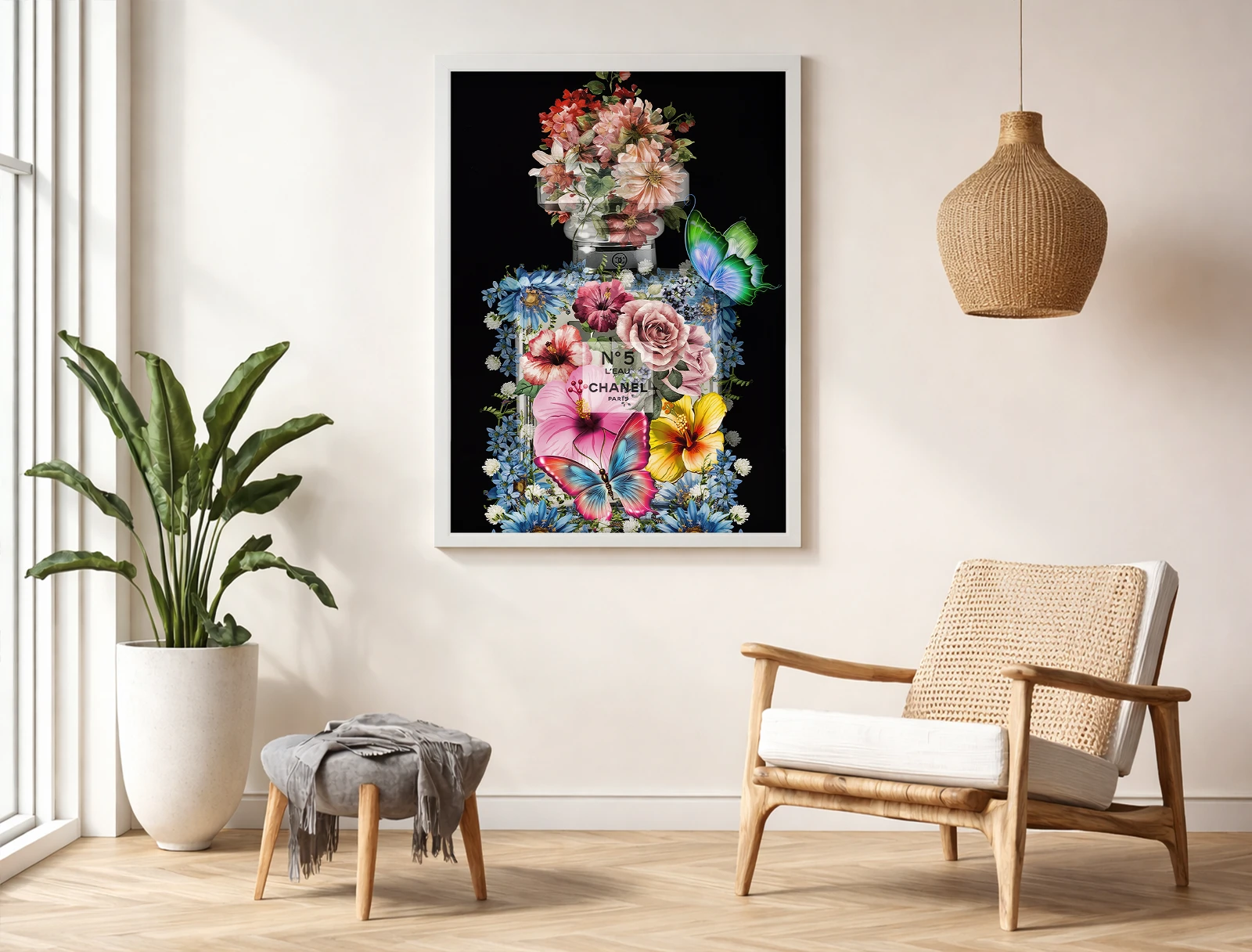 ✅ Картина в раме в Кишинёве с цветами и Chanel для интерьера. ✓ Яркий постер с бабочками и цветочным декором. 🚚 Доставка по Кишинёву и Молдове. ⭐ Art-Design.md