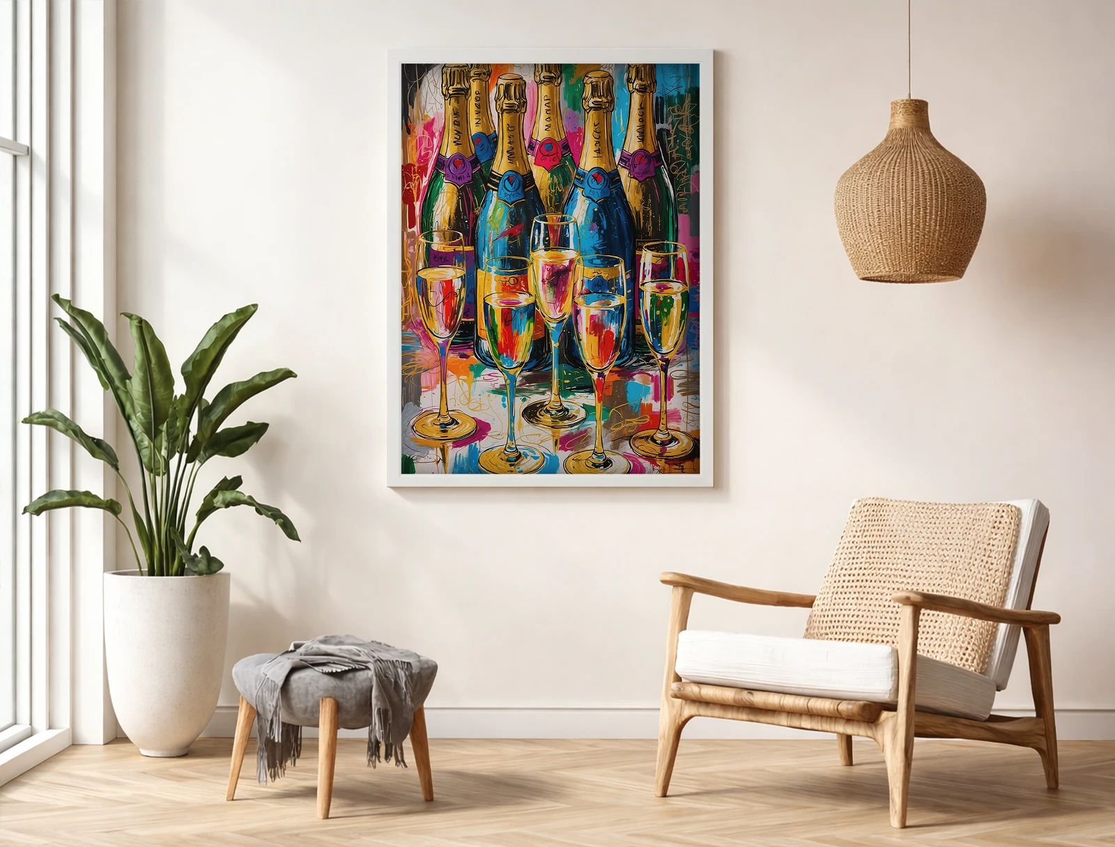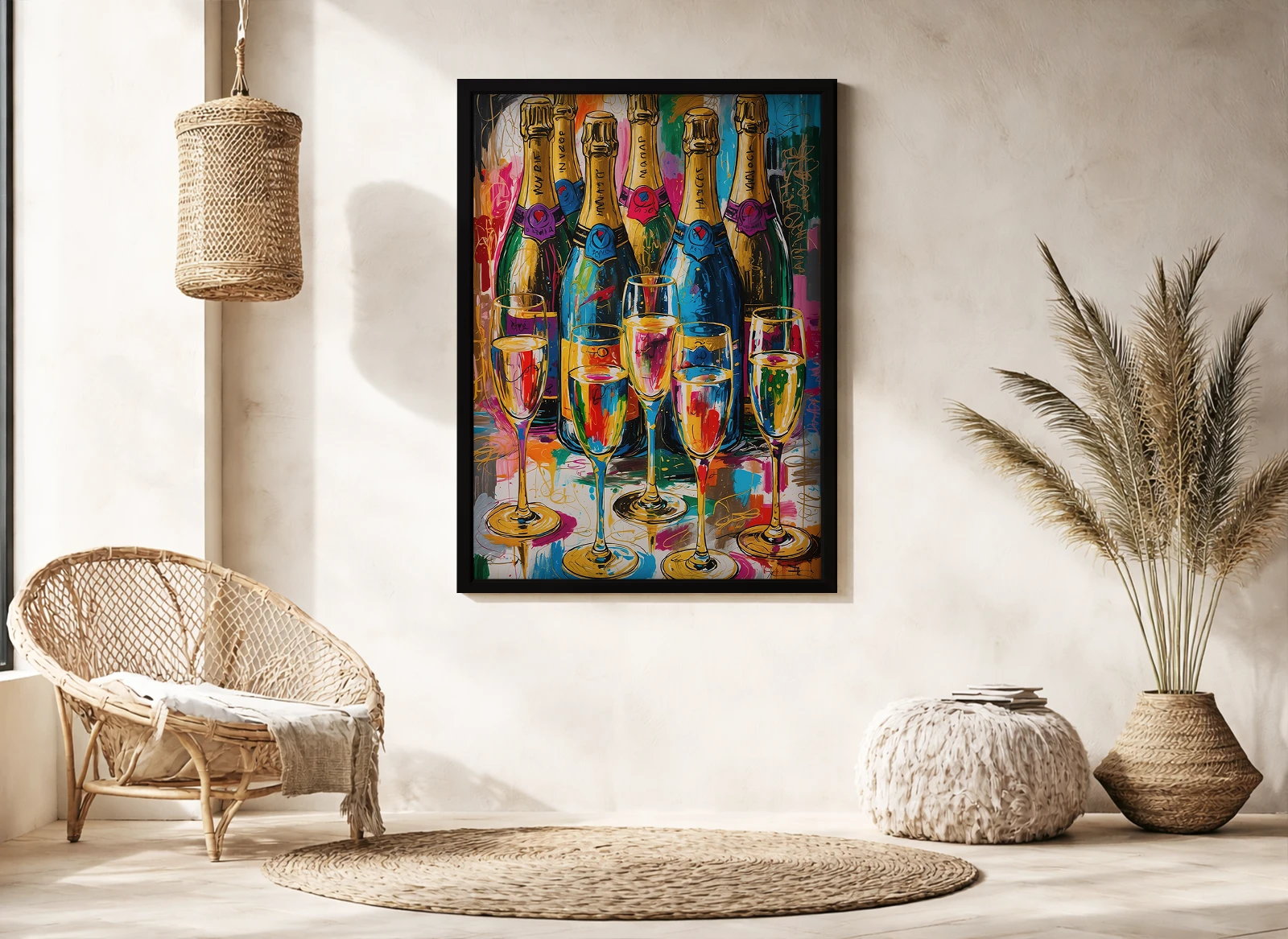 ✅ Картина в раме в Кишинёве с шампанским и бокалами для интерьера. ✓ Яркий постер с напитками и праздничным настроением. 🚚 Доставка по Кишинёву. ⭐ Art-Design.