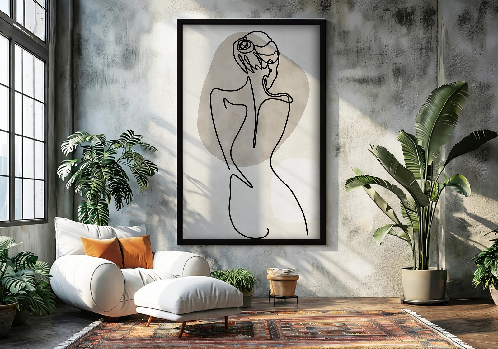 ✅ Картины в рамах Кишинёв с женским силуэтом линией. ✓ Минималистичный постер для стильного интерьера. 🚚 Доставка по Кишинёву и Молдове. ⭐ Art-Design.md