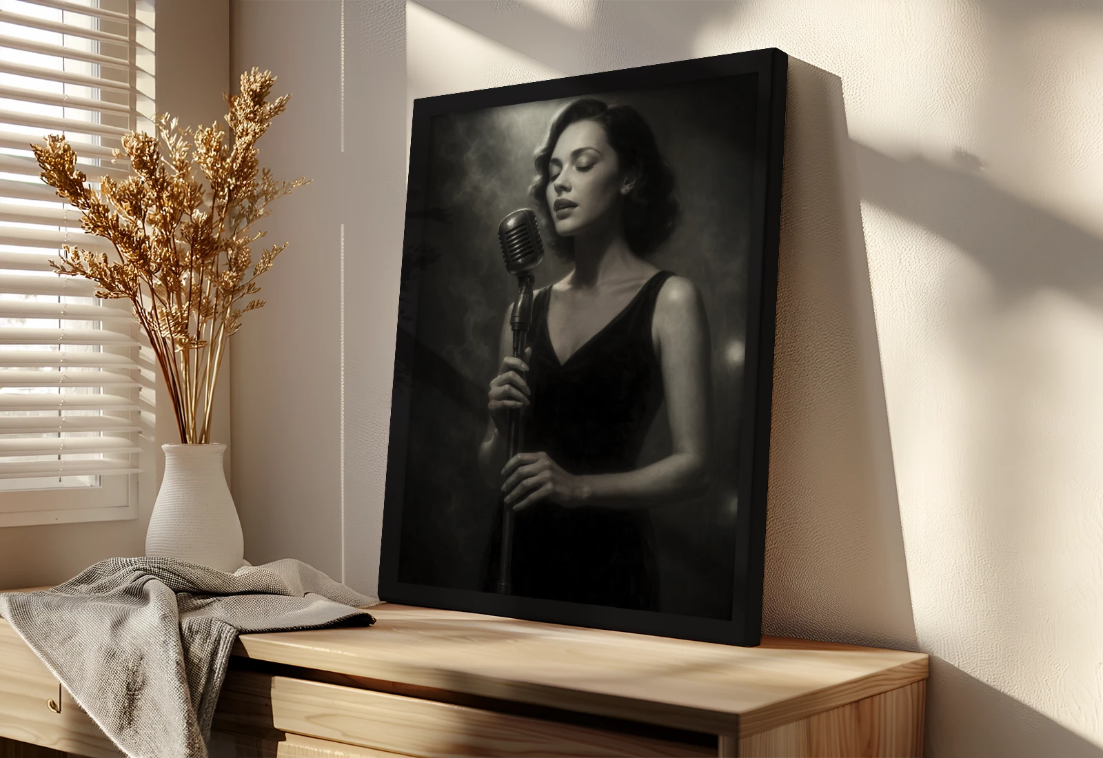 Она идеально подойдёт для интерьера гостиной или спальни, добавляя нотку утончённости, искусства и лёгкой ностальгии.