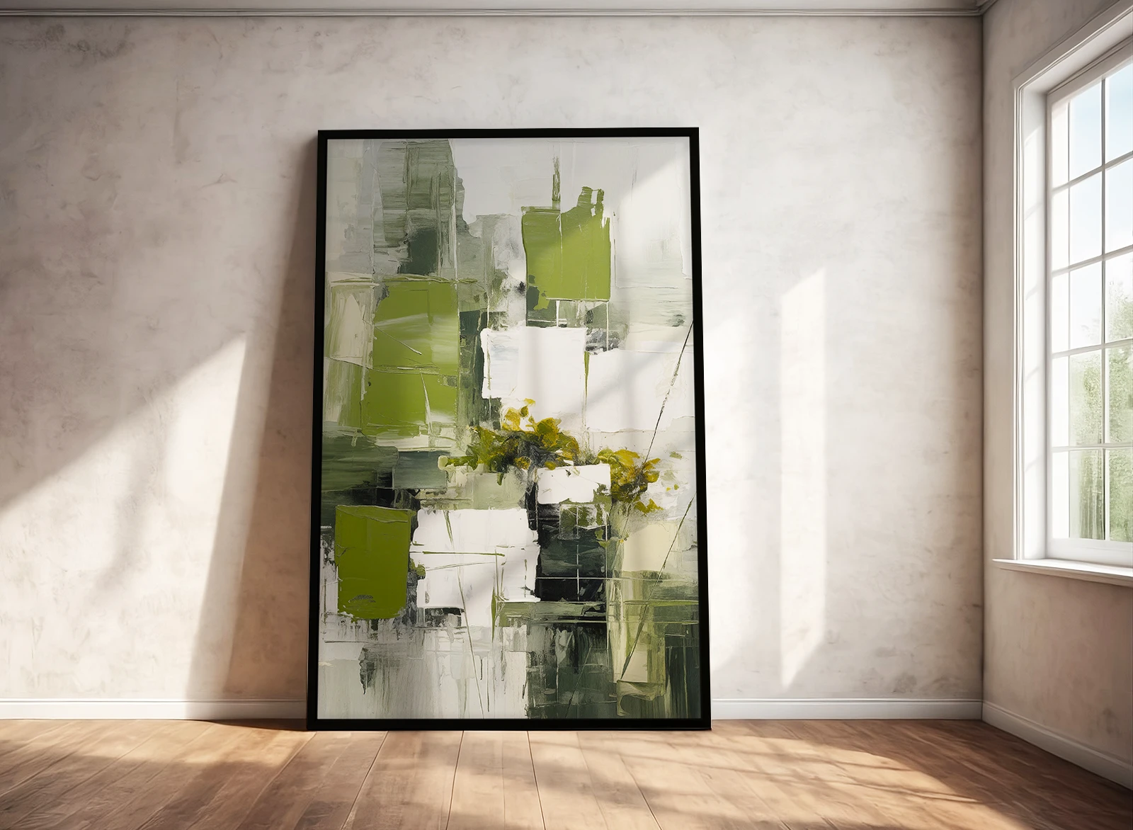 Мазки и геометрические формы создают ощущение структуры и движения одновременно. Эта картина отлично впишется в современный интерьер, добавляя лёгкость, природный акцент и визуальное равновесие пространству.