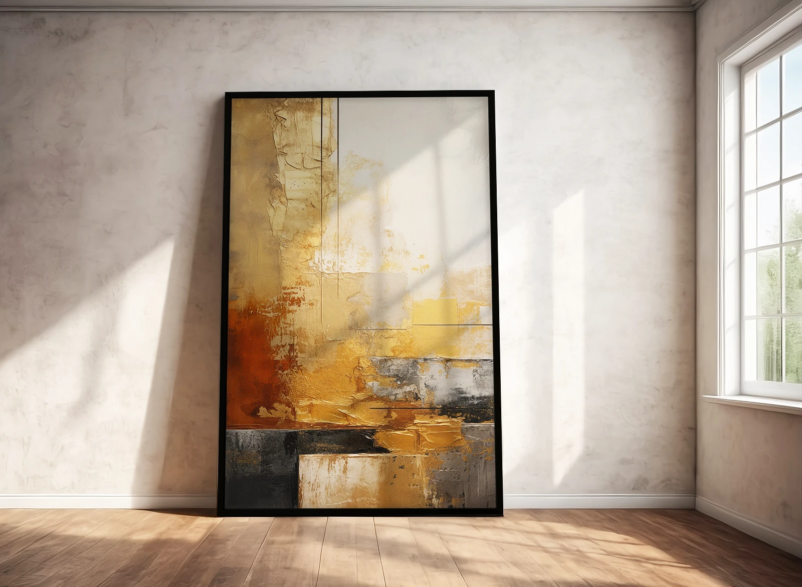 Я смотрю на эту картину и чувствую тепло, словно солнечный свет мягко касается поверхности. Золотистые и бежевые оттенки создают уютную атмосферу, а фактурные мазки добавляют глубину и живость композиции.